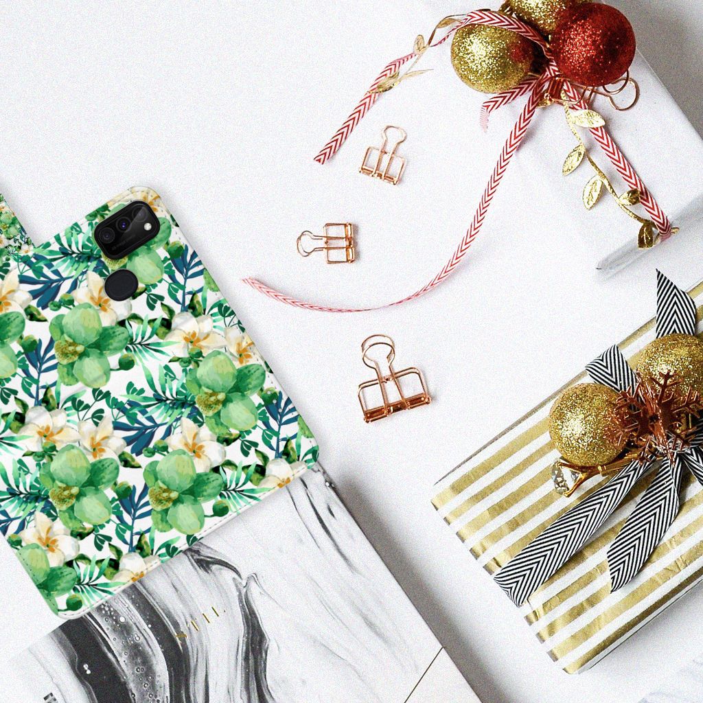 Samsung Galaxy M21 | M30s Hoesje met ruimte voor drie pasjes Orchidee Groen