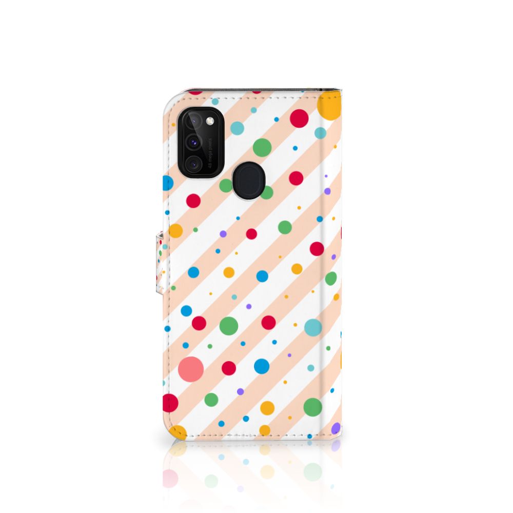 Een Samsung Galaxy M21 | M30s Telefoon Hoesje met verschillende kleuren stippen is een schitterende bescherming van jouw smartphone. Het boekhoesje met het design Dots in alle kleuren van de regenboog komt voor jou als geroepen. Maak je geen gebruik van dit zeer mooie hoesje, dan kan het met jouw smartphone een beetje beroerd aflopen. Dit mooie boekhoesje met verschillende kleuren stippen zorgt voor een volledige bescherming van je smartphone en wordt aan alle zijden bedrukt. Sommige stippen staan ook op het magnetische lipje aan de buitenzijde. Verder is de houder aan de binnenzijde van TPU. Jouw telefoon is dus zeer goed opgeborgen en kan geen kant op. Met een hoesje met stippen in verschillende kleuren op alle zijden blijft jouw telefoon volledig in tact. Heb je liever een boekhoesje met stippen in andere opvallende kleuren? Ontwerp dan zelf case met je eigen foto’s en teksten!