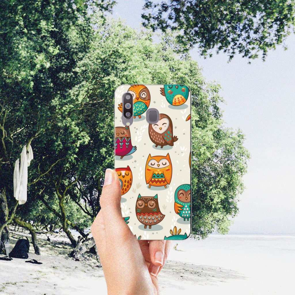 Deze Samsung Galaxy M30 TPU Hoesje met Vrolijke Uilen is echt iets voor de nachtbrakers onder ons. De uil is zoals je weet bij uitstek een vogel die in de nachtelijke uren actief is. Ben jij ook iemand die s ’nachts tot leven komt, dan is deze tpu case met uilen in felle kleuren echt iets voor jou. Als je tot in de late uurtjes op stap bent, komt het goed uit dat jouw smartphone zeer goed is beschermd met deze tpu case met uilen. De case met uilen heeft opstaande randen aan de voorzijde, waardoor het touchscreen de grond niet raakt als de smartphone uit je handen valt. Verder is het onbreekbare TPU zeer flexibel en schokabsorberend. Dit komt het design ten goede. De zijkanten van de TPU case met print van uilen worden niet bedrukt, maar de bovenzijde wel. De wat ruigere types hebben veel baat bij deze tpu case met uilen in felle kleuren.