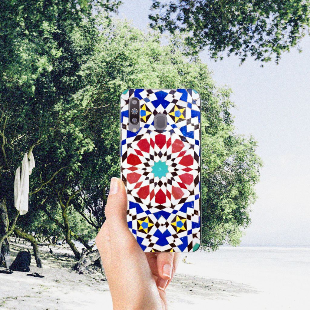 Aan design hoesjes met kunstvormen geen gebrek in onze uitgebreide collectie. Wat dacht je van dit design hoesje met Mozaïek . Dit is een kunstvorm waarbij een grote afbeelding wordt gemaakt uit een groot aantal kleine gekleurde steentjes (tesserae), die in een vloer of wand worden gemetseld. Deze gekleurde steentjes zie je terug op deze tpu case met design van mozaïek. Een tpu case is zeer flexibel. Een Samsung Galaxy M30 TPU Siliconen Hoesje met print zorgt voor een bescherming van de achterzijde en zijkanten van je smartphone. Deze zijkanten worden niet bedrukt. De Grieken en Romeinen beheersten de kunst al. Op diverse plaatsen in Europa zijn mozaïeken teruggevonden die tot op de dag van vandaag goed bewaard zijn gebleven. Met een tpu hoesje met mozaïek blijft jouw telefoon in tact.