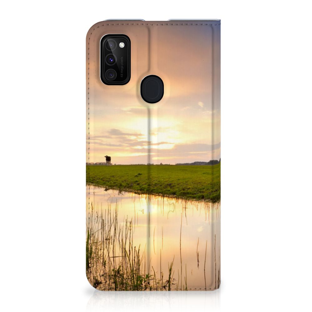 Het levert een idyllisch plaatje op, dit hoesje met een koe en ondergaande zon op de achtergrond. Door een koe buiten te laten lopen en grazen, hebben ze minder kans om ziek te worden. De Koe graast het liefst met soortgenoten, al zijn deze een stukje van de koe op de case verwijderd. Dit levert ook een mooi plaatje op, zoals je kunt zien op dit design hoesje. Deze stand case ziet er strak uit en is voorzien van verschillende uitsparingen. Een Samsung Galaxy M30s | M21 Hoesje maken met magneet aan de binnenzijde beschermt jouw smartphone overal. Alle zijden zijn bedrukt. Koeien hebben lange graasperioden nodig, afgewisseld door rust- en herkauwperioden. Zo goed als grazen voelt voor koeien, zo lang zal jouw design hoesje meegaan. De binnenkant van de stand case is van TPU, de buitenzijde van leer.