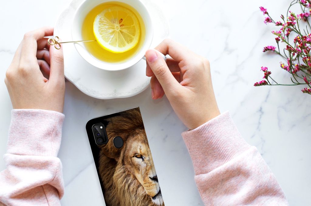 We hebben een grote verzameling katten op onze hoesjes staan, waarvan de leeuw na de tijger de grootste is. De Leeuw op het design hoesje ziet er door de indrukwekkende manen bijzonder krachtig uit. De kracht straalt ook af op deze Samsung Galaxy M30s | M21 Hoesje maken, die jouw smartphone aan alle zijden perfect beschermt. De magnetische sluiting aan de binnenkant is bijzonder handig en nuttig. Rond het begin van de jaartelling had de leeuw een veel grotere verspreiding dan nu. De afgelopen 20 jaar is het aantal leeuwen met 30 tot 50% afgenomen. Zonde natuurlijk. Dit design hoesje met leeuw zal in elk geval nooit verloren gaan. De print op deze case is zeer duurzaam. Jouw smartphone past perfect in de houder van TPU aan de binnenzijde, waarin je ook een pasje kunt stoppen. Verder heeft de case een standaard.