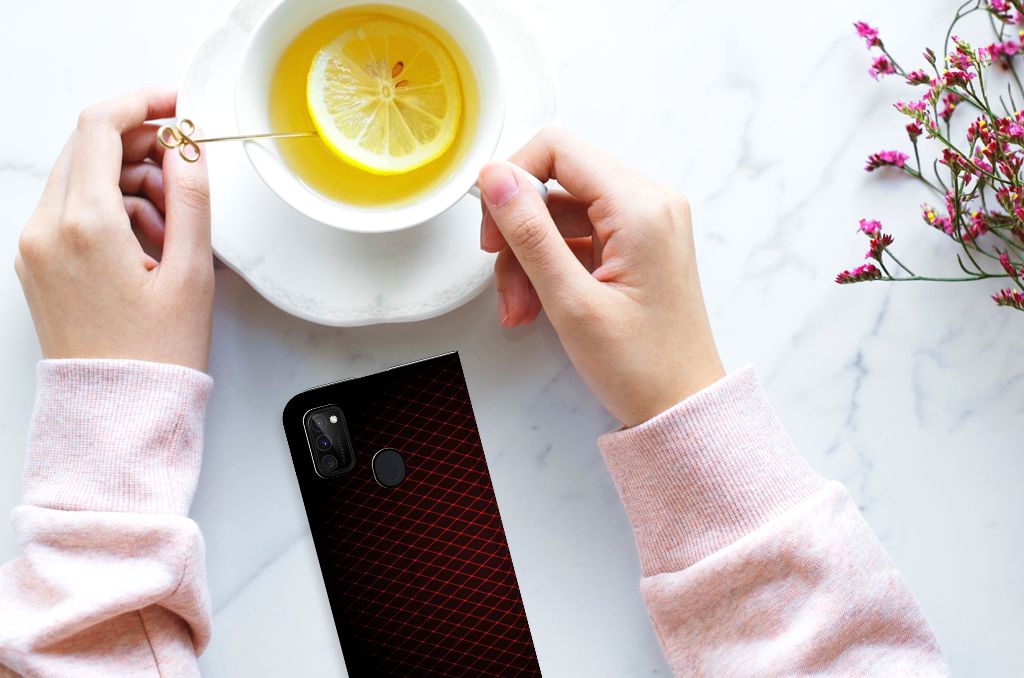 Samsung Galaxy M30s | M21 Hoesje met Magneet Geruit Rood