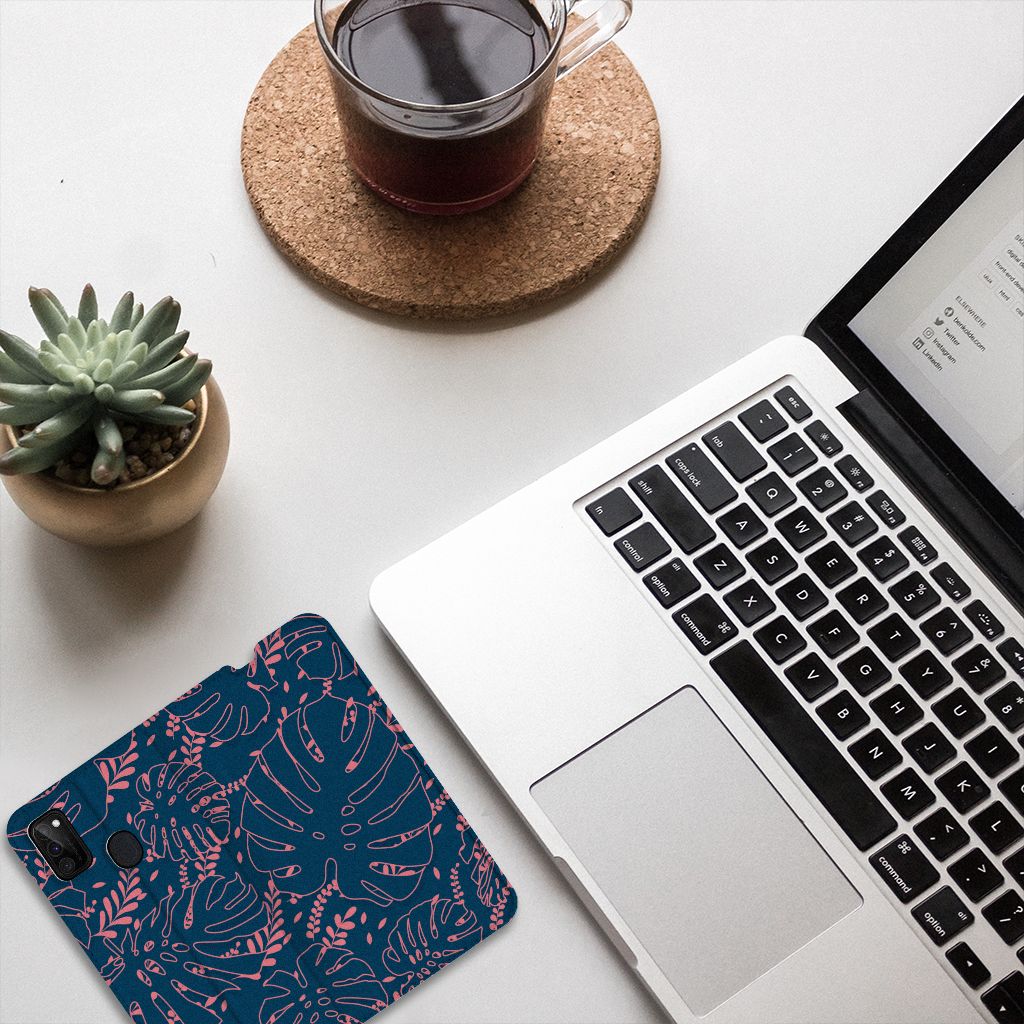 Je voelt je verbonden met de natuur als je kiest voor deze Samsung Galaxy M30s | M21 Smart Cover met print van roze bladeren op een blauwe achtergrond. De print bestaat uit verschillende roze bladeren en dit zorgt voor een fraai decoratief geheel. Met dit patroon van roze bladeren op een blauwe achtergrond creëer je een opvallende uitstraling voor jouw smartphone. Jij doet er verstandig aan om je telefoon te beschermen met dit design hoesje met roze bladeren op een blauwe achtergrond, die staan op een stand case. Dit hoesje kenmerkt zich onder meer door het handige vakje aan de binnenzijde en de magnetische sluiting aan de binnenzijde. Voel jij jezelf happy bij een beeld van roze bladeren op een blauwe achtergrond, dan is deze stand case met print een uitstekende optie. Het beschermt jouw telefoon aan alle zijden. Het TPU aan de binnenzijde klemt zich perfect om jouw smartphone.