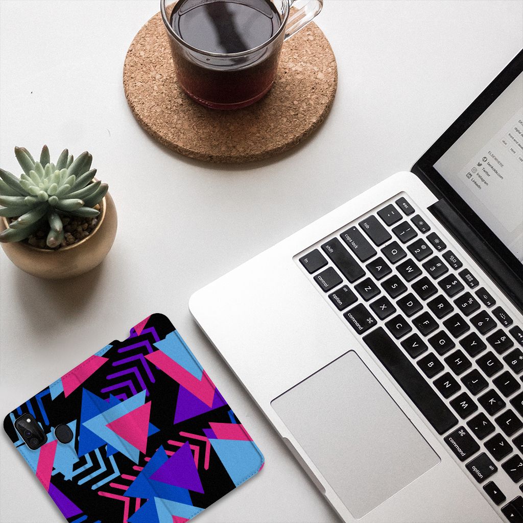 Dit fraaie hoesje met het design Funky Triangle is alles behalve eenvoudig en sober. Dat komt goed uit, want je hebt natuurlijk ook geen doorsnee telefoon gekocht. Mocht je dat wel hebben gedaan, dan wordt hij meteen speciaal als je een Samsung Galaxy M30s | M21 Stand Case koopt voor een spotprijsje. Een ding is zeker: opvallen ga je beslist met dit hoesje met paarse, roze en blauwe driehoeken. Jij zult in je element zijn met dit design hoesje met paarse, roze en blauwe driehoeken, omdat het er schitterend uitziet en jouw telefoon perfect beschermt. Het smartphonehoesje beschermt jouw telefoon aan alle zijden en beschikt over 1 opbergvakje en een speciale standaard. Het hoesje wordt afgesloten met een magneet aan de binnenzijde. De houder aan de binnenzijde is van TPU. Alle zijden van de stand case worden bedrukt. De paarse, roze en blauwe driehoeken maken de case helemaal af.