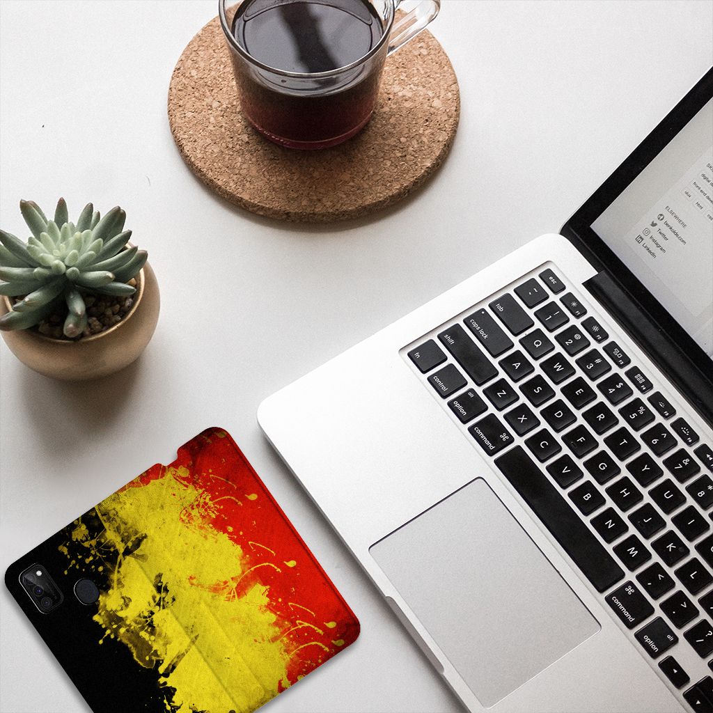 Dit design hoesje met Belgische kleuren van de vlag ziet er zeer fraai uit. De redenen om België te bezoeken zijn legio. Zo is Antwerpen een populaire stad om te winkelen, zijn Gent, Brussel en Brugge erg in trek als stedentripbestemming en kunnen natuur- en sportliefhebbers zich in grote delen van het land uitstekend vermaken. Wat België zo leuk maakt als bestemming is dat je direct het gevoel hebt in het buitenland te zijn, maar dat het toch heel vertrouwd aanvoelt. Ben jij liefhebber van dit gezellige land, dan zal dit design hoesje in Belgische kleuren je waarschijnlijk wel bevallen. Ze staan op een Samsung Galaxy M30s | M21 Standcase. Deze case beschermt jouw telefoon aan alle kanten en beschikt over een 1 opbergvakje en een speciale standaard. Het hoesje wordt afgesloten met een magneet aan de binnenzijde. De houder aan de binnenzijde is van TPU.
