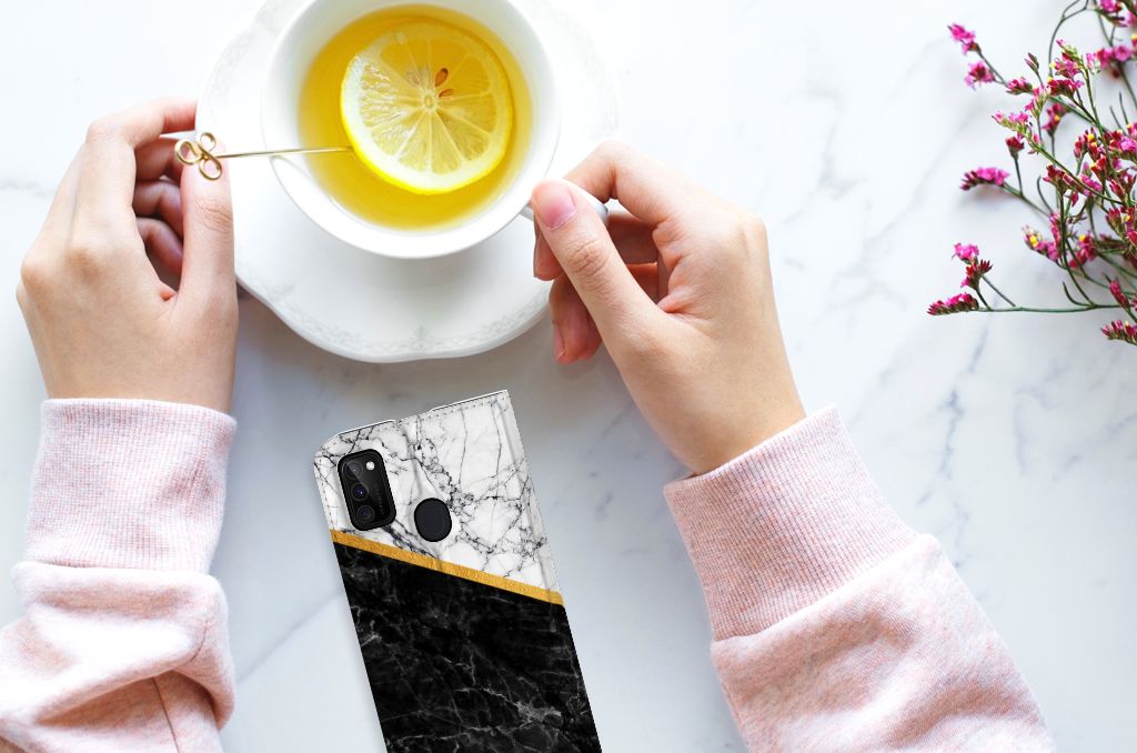 Dit design hoesje met zwartwit marmer is zeer geschikt voor jouw kostbare telefoon. Vanwege zijn prachtige lichtval en vastheid is marmer zeer gewild als bouwmateriaal. Op jouw smartphone kun je lange tijd bouwen als jij kiest voor deze hele mooie Samsung Galaxy M30s | M21 Standcase. Naast het zwart-witte marmer zijn er de diverse marmersoorten in een ruim kleurenpallet te krijgen. Deze stand case met marmer in zwart-wit wordt bedrukt op alle zijden. De case beschikt over een vakje voor een pasje en toebehoren en een magnetische sluiting aan de binnenzijde. Verder heeft de case in zwart wit marmer een houder van TPU. Wij hebben onze designer veel vrijheid gegeven met het ontwerpen dit mooie hoesje. Het resultaat zie je terug in deze stand case met zwartwit marmer, dat de ideale bescherming is voor jouw smartphone.