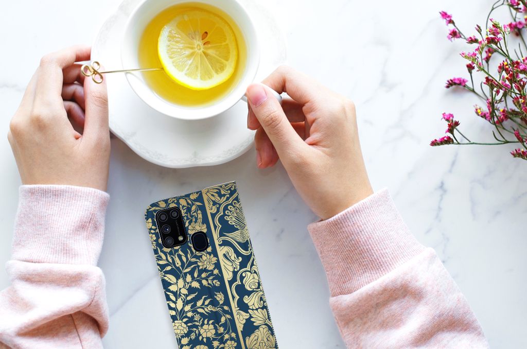 Dit koninklijke hoesje met Beige Flowers ziet er oogverblindend uit. De beige kleur geeft dit design hoesje een super fraai en chique uiterlijk. Je voelt jezelf de koning te rijk als je jouw telefoon beschermt met deze elegante case. De donkerblauwe achtergrond geeft dit design hoesje extra uitstraling en combineert goed met beige. Het hoesje ziet er zeer kostbaar uit, maar is erg goedkoop. Voor een zeer bescheiden bedrag ben je in het bezit van dit design hoesje. De case geeft jou en je smartphone extra status. Voor goedkope design hoesjes zit je goed bij B2C Telecom. Het design staat op een stand case. Deze case beschermt jouw Samsung Galaxy M31 aan alle kanten en beschikt over een 1 opbergvakje en een speciale standaard. Het Smart Cover wordt afgesloten met een magneet aan de binnenzijde. De houder aan de binnenzijde is van TPU. Alle zijden van de stand case worden bedrukt.