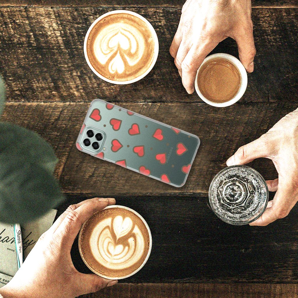 Met deze Samsung Galaxy M33 TPU bumper met hartjes op een grijs met witte achtergrond maak jij een goede beurt als je dit cadeau geeft aan je vriend of vriendin. Bekroon je liefde voor elkaar met deze hele mooie tpu case, die jouw telefoon met name aan de achterkant en zijkanten goed beschermt. Dit is echt een prachtige manier om je telefoon te beschermen. Het tpu hoesje met design met Hearts is ook nog eens zeer praktisch, mede door het buigzame materiaal en de uitsparingen. Als je telefoon met het TPU hoesje uit je hand valt, stuitert het als het ware meteen weer terug in je hand en zal het scherm in tact blijven. De case heeft namelijk opstaande randen aan de voorkant. Alleen de bovenkant van de case wordt bedrukt met hartjes, de zijkanten zijn doorzichtig. Voor een habbekrats is dit hoesje met hartjes op een grijs met witte achtergrond te bestellen.