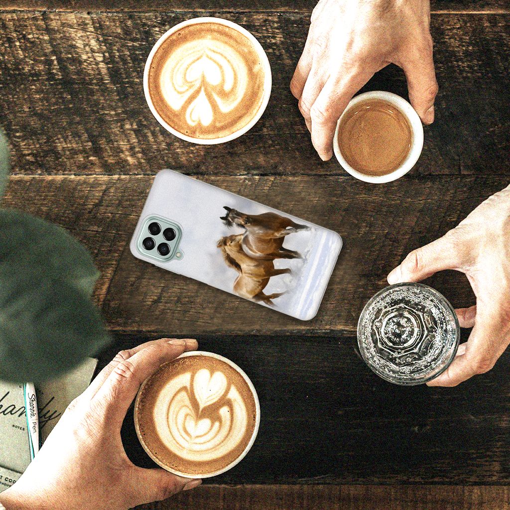 Voor de paardenliefhebbers onder ons hebben we onze collectie uitgebreid met dit design hoesje met print van paarden. Vroeger hield de mens vooral werkpaarden, inmiddels hebben we vriendschap gesloten met het paard. Vandaar dat het ook een favoriet dier is op onze smartphonehoesjes, zoals deze tpu case. Een TPU Hoesje voor de Samsung Galaxy M33 met Paarden is niet alleen super mooi en chique, maar ook nog eens zeer flexibel. Verder is de case schokabsorberend en heeft het opstaande randen. Zie je liever je eigen paard terug op een hoesje. Dat kan! Door zelf een uniek hoesje te ontwerpen, met eigen foto’s en teksten. De TPU case wordt aan de bovenzijde bedrukt, de zijkanten blijven transparant.