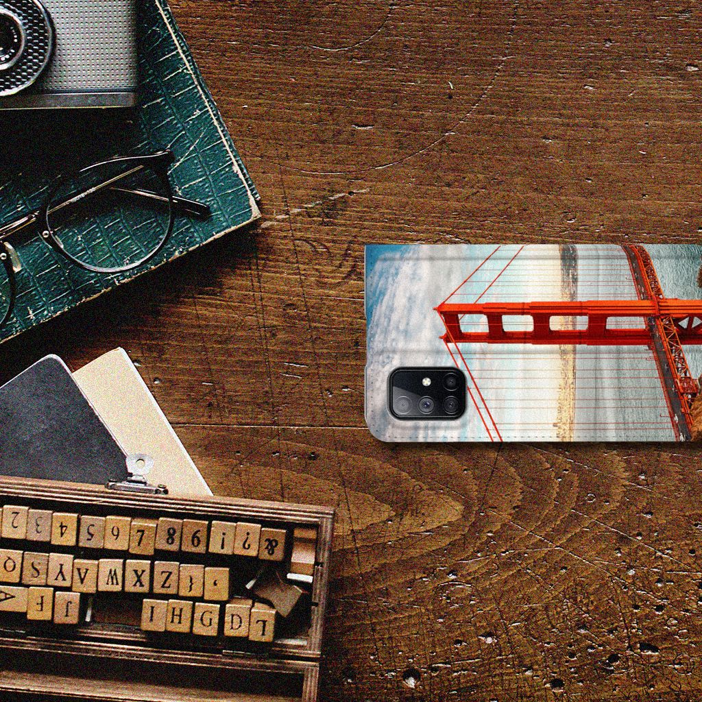 De Golden Gate Bridge is een technisch meesterwerk. Een van de langste en hoogste hangbruggen ter wereld is een schitterend staaltje van ingenieurskunst en een prachtig monument, dat met de rode kleur fel afsteekt tegen de omgeving. Dit monument komt op een fraaie manier tot uitdrukking op deze Samsung Galaxy M51 Book Cover. Het telefoonhoesje met design heeft 1 opbergvakje, waarin je een pasje of briefgeld kunt stoppen. Jouw telefoon past precies in de houder van TPU en de case wordt aan de binnenzijde magnetisch afgesloten. De Golden Gate Bridge is vanuit vele plekken in en rond San Francisco op een spectaculaire manier zichtbaar. Alle kanten van het telefoonhoesje worden bedrukt met foto’s van dit monument. Jouw telefoon is aan alle kanten goed beschermd met dit design hoesje met Golden Bridge print.