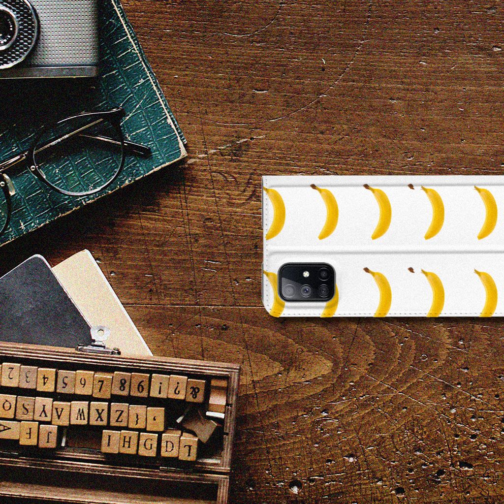 Bananen zitten tjokvol natuurlijke energie-oppeppers. Fructose, glucose, vezels… om er maar eens een paar te noemen. Een banaan is zo’n energiebom, dat wanneer je er twee eet je genoeg energie verzameld hebt om anderhalf uur vol te sporten. Deze vrucht geeft power, daarom misstaan ze ook niet op deze leuke Samsung Galaxy M51 Flip Style Cover. Jouw smartphone blijft zijn kracht behouden als je kiest voor dit design hoesje met bananen. Het grijswit geblokte patroon op de achtergrond geeft nog wat extra’s aan de banaan. Altijd als een print van een banaan op je hoesje willen hebben? Dit is je kans. De bananen staan op een stand case. Deze case beschermt jouw telefoon aan alle kanten en beschikt over een 1 opbergvakje en een speciale standaard. Met het aantal bananen dat op dit hoesje staat heb je energie voor een hele maanden of misschien wel een paar maanden. Het hoesje wordt afgesloten met een magneet aan de binnenzijde. De houder aan de binnenzijde is van TPU.