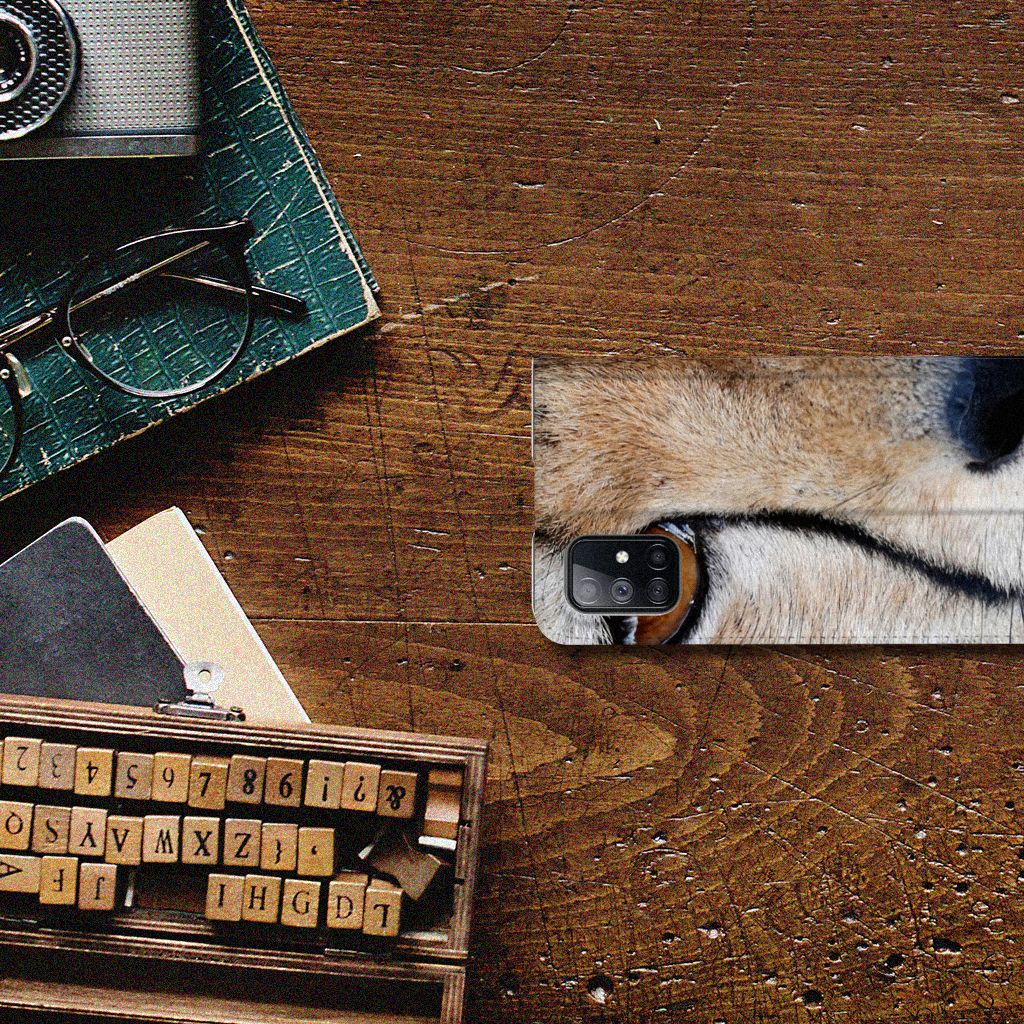 Wist je dat een cheetah, ook wel jachtluipaard genoemd, een topsnelheid van 120 km/u kan halen? Dit maakt de cheetah tot het snelste landdier ter wereld. Dit design hoesje met cheetah print kunnen we dus met recht zeer flitsend noemen. Dit komt niet alleen door de foto van het jachtluipaard, maar ook door de uitstraling van het hoesje. De close up van het dier hebben we op een stand case gezet. Dit is een multifunctionele case, met een vakje aan de binnenzijde waarin je een pasje kwijt kunt. Hiermee is de kous nog niet af, want een Samsung Galaxy M51 Hoesje maken wordt aan de binnenzijde magnetisch afgesloten en heeft een standaard. De vacht van jachtluipaarden is bedekt met ronde, zwarte vlekjes. Hierdoor valt het dier in zijn natuurlijke leefomgeving zo min mogelijk op. Jij doet dat zeker wel, met deze stand case met design. De buitenzijde is van leer, de houder aan de binnenzijde van TPU.