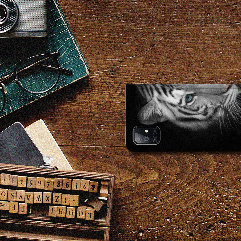 Omdat de Witte Tijger zo bijzonder is, zijn wij bereid deze voor zeer lage kosten op een stand case te zetten. Dit kunnen we zo goedkoop doen omdat we het drukwerk in eigen beheer doen. Witte tijgers leefden lange tijd in de bossen van India, Bangladesh, Nepal, Bhutan en China en kunnen wel 257 kilo wegen. Dit zwaargewicht kunnen we bedrukken op verschillende soorten hoesjes, zoals deze stand cases. Het Samsung Galaxy M51 Hoesje maken is van PU-leer (buitenzijde) en TPU (binnenzijde) en beschikt over een houder voor pasjes en briefgeld. Verder is dit hoesje met witte tijger print voorzien van magneten aan de binnenzijde. Tegenwoordig zijn witte tijgers alleen in gevangenschap te bewonderen. Jij zorgt voor de perfecte bescherming van je smartphone met dit design hoesje met witte tijger.