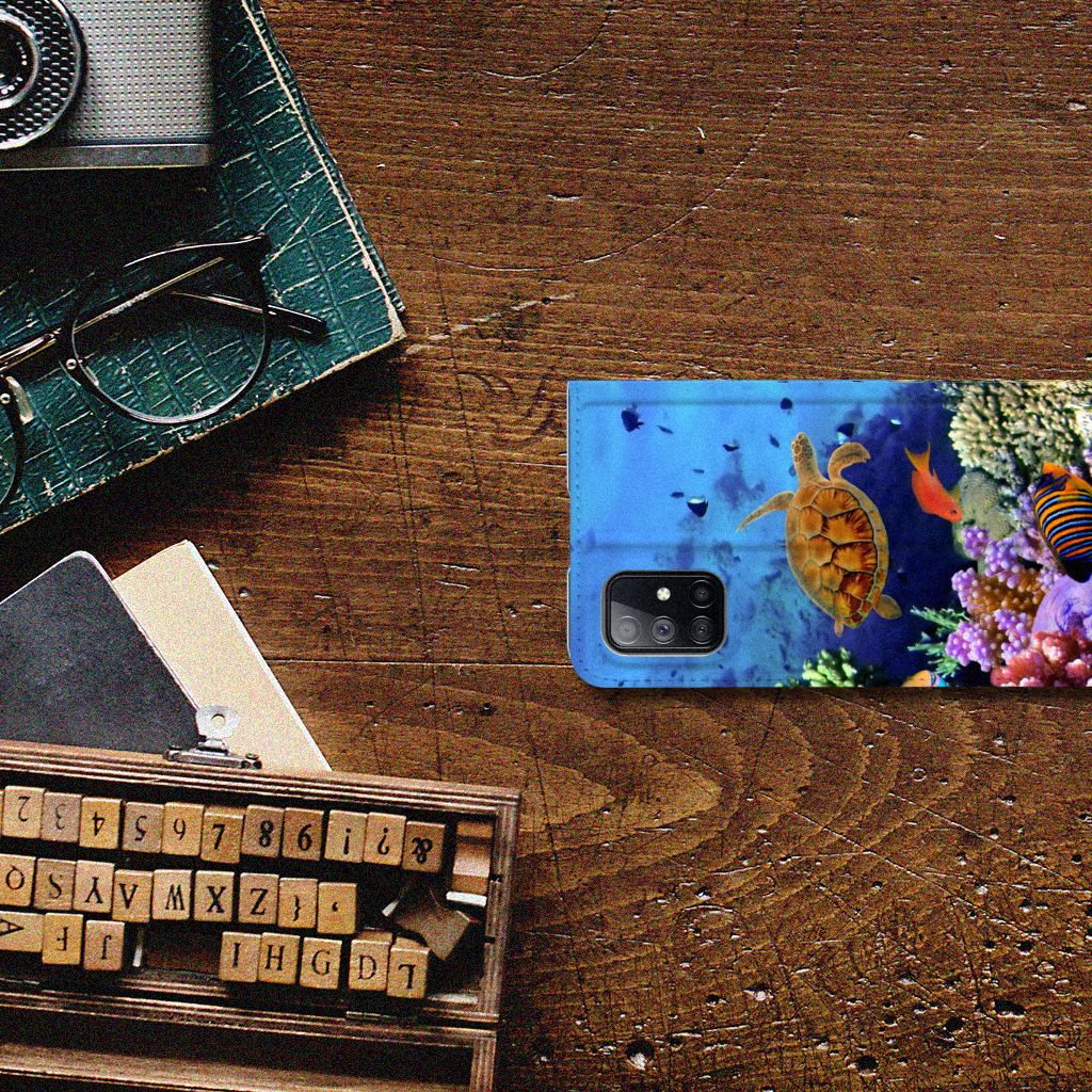 Dit kleurrijke hoesje met tropische Vissen is een ware eyecatcher. Als je aan het duiken bent en je treft een school aan met dit soort opvallende vissen, dan heb je een geweldige ervaring. Maar je hoeft er eigenlijk niet per se het water voor in te duiken. Want wij hebben een schitterende verzameling vissen op dit design hoesje gezet. Met onze zeer geavanceerde printer zetten we de afbeelding van vissen op alle zijden van de Samsung Galaxy M51 Hoesje maken. De case heeft aan de binnenkant een vakje waarin je jouw creditcard of ander pasje kwijt kunt. Ga je een dagje vissen, dan hoef je de portemonnee dus ook niet op zak te hebben. Verder is je telefoon natuurlijk maximaal beschermd met deze stand case met print van tropische vissen. De houder aan de binnenzijde van het design hoesje met vissen print is van TPU.