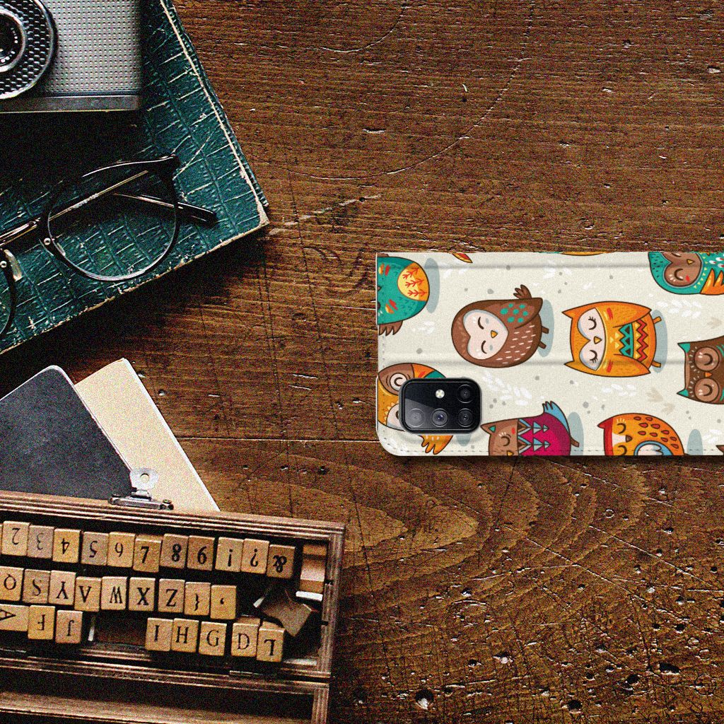 Deze Samsung Galaxy M51 Hoesje maken met Vrolijke Uilen is echt iets voor de nachtbrakers onder ons. De uil is zoals je weet bij uitstek een vogel die in de nachtelijke uren actief is. Ben jij ook iemand die s ’nachts tot leven komt, dan is deze stand case met uilen in felle kleuren echt iets voor jou. Als je tot in de late uurtjes op stap bent, komt het goed uit dat jouw smartphone aan alle kanten goed is beschermd met deze stand case met uilen. De case met uilen heeft een magnetische sluiting aan de binnenkant, waardoor de hoes niet openklapt als die uit je handen valt. Jouw creditcard of pinpas heb je als het goed is veilig opgeborgen in het vakje aan de binnenzijde. De houder aan de binnenzijde van de case met print van uilen is van het flexibele TPU. De wat ruigere types hebben veel baat bij deze stand case met uilen in felle kleuren.