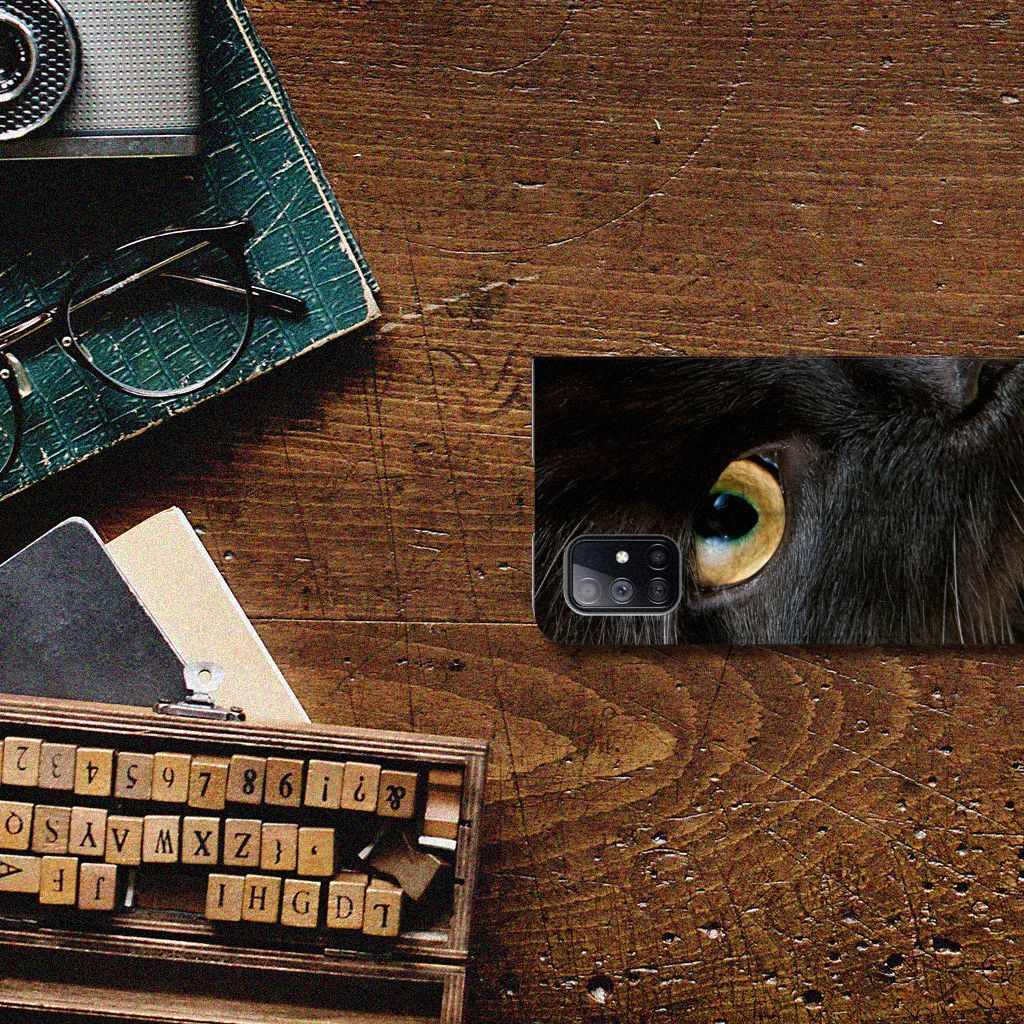 warte katten zijn heel speciaal, vandaar we een exemplaar op een design hoesje hebben gezet. Een zwarte kat schijnt bijvoorbeeld veel beter te kunnen horen dan witte katten. Deze zwarte kat staat op zeer prominente wijze op een stand case. Een Samsung Galaxy M51 Hoesje maken met zwarte kat beschermt jouw smartphone aan alle zijden en wordt ook volledig bedrukt. De stand case met zwarte kat ziet er geweldig uit en is voorzien van verschillende uitsparingen en een speciale standaard. Alle zijden van de case zijn bedrukt. Dit design hoesje is van TPU aan de binnenzijde en zeer flexibel. Verder heeft de case een houder voor een pasje.