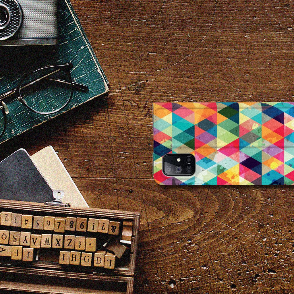 Van dit geruite design hoesje moet je een beetje houden. Maar als je het eenmaal in bezit hebt, ben je waarschijnlijk binnen no time verkocht. Het design heeft ruitjes in alle kleuren van de regenboog en door de grijze achtergrond kan het hoesje enigszins druk overkomen. Maar tegelijkertijd is dit de kracht van het hoesje. Met dit design hoesje Geruit zal je namelijk heel erg opvallen. Dit is voor veel vooral jonge smartphone gebruikers een belangrijk voordeel. Deze geruite print staat op een Samsung Galaxy M51 Hoesje met Magneet. Dit zeer populaire smartphone hoesje heeft 1 vakje en is aan alle zijden bedrukt. Verder heeft de case een standaard en een magneet aan de binnenkant. Het ruitjespatroon zie je op kleding al enige tijd terugkomen en op deze stand case staat het ook erg goed. De houder is van TPU, de buitenzijde van PU-leer.