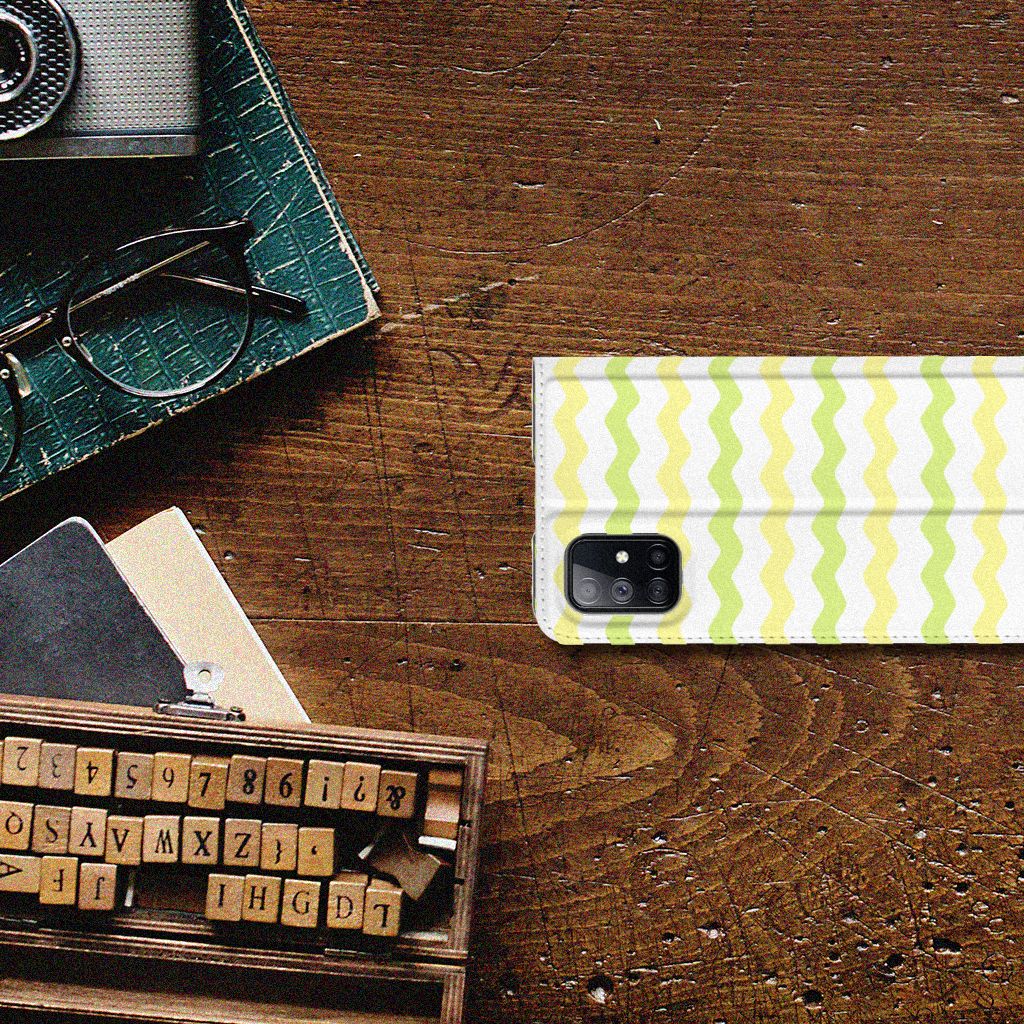 Dit Waves Yellow design hoesje met licht groene en gele golven is speciaal ontworpen voor jouw telefoon. We hebben een vleugje lichtgeel toegevoegd, zodat de case er een beetje spannender en leuker uitziet. Dit licht groene hoesje met licht groene golven ziet er oogstrelend uit. Het wordt in ons eigen magazijn bedrukt, in zeer goede kwaliteit inkt. Wij kunnen dus een zeer duurzaam hoesje met licht groene golven garanderen. Dit hele mooie Samsung Galaxy M51 Hoesje met Magneet heeft vele extra’s. Is dit licht groene design hoesje je op het lijf geschreven? Grijp dan nu je kans. Deze stand case met licht groene golven beschermt jouw telefoon aan alle kanten en beschikt over een 1 opbergvakje en een speciale standaard. Het licht groene hoesje wordt afgesloten met een magneet aan de binnenzijde. De houder aan de binnenzijde is van het flexibele TPU. Alle zijden van de stand case worden bedrukt.
