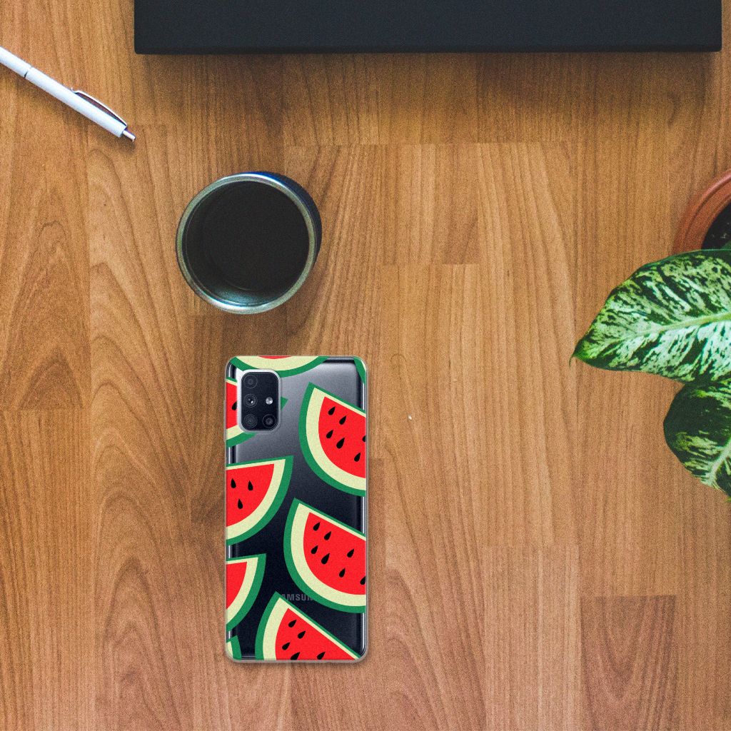 Watermeloenen zijn uitstekende dorstlessers, misschien dat je daarom juist in de zomermaanden extra enthousiast raakt van dit design hoesje Watermelons. Jij blijft gezond als je zo nu en dan een watermeloen neemt, jouw smartphone blijft in tact als je er deze Samsung Galaxy M51 Siliconen Case omheen doet. Deze tpu case wordt alleen aan de bovenkant bedrukt met watermeloenen is zeer flexibel. De randen van het hoesje blijven transparant. Je kunt ook kiezen voor andere soorten fruit op je hoesje. Kijk maar eens naar onze andere design hoesjes op onze website.
