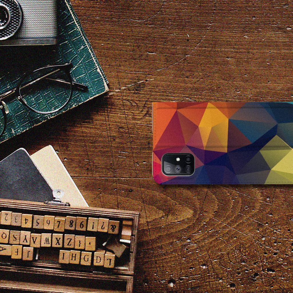 Veelkleurige driehoeken die samen eindeloze asymmetrische patronen lijken te vormen. Het is het abstracte schouwspel dat op dit fraaie hoesje voor je Samsung Galaxy M51 direct de aandacht trekt noemen we voor het gemak trekt noemen we voor het gemak Polygon Color. De een ziet er een berglandschap in, de ander piramides. Wat zie jij erin? Zeker is in elk geval dat de aanblik van dit fascinerende ontwerp je niet snel gaat vervelen. Het kleurige spel van lijnen en vlakken blijft eindeloos boeien en geeft jouw Stand Case een hippe en kunstzinnige uitstraling. De kracht die het lijnenspel uitstraalt, komt ook terug in het hoesje zelf. De solide hoes van PU-leer beschikt ook over een 1 pashouder en een speciale standaard. Het hoesje wordt afgesloten met een magneet aan de binnenzijde. De houder aan de binnenzijde is van TPU. Alle zijden worden bedrukt.