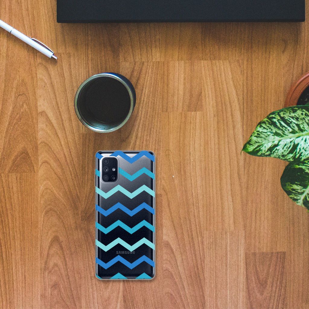Dit zigzag blauwe design hoesje is speciaal ontworpen voor jou. We hebben bewust verschillende stijlen blauw gebruikt, zodat er voldoende sprake is van variatie. Dit blauwwitte TPU bumper ziet er super strak uit. Dat kan ook niet anders, als je weet dat onze zeer talentvolle designer er hoogstpersoonlijk voor verantwoordelijk is. Hij schudt wekelijks nieuwe designs uit zijn mouw en dit zigzag blauwe hoesje is een van zijn fraaiste creaties. Een heel dik design hoesje, al zeggen we het zelf. Valt dit blauwwitte design hoesje goed bij jou? Bestel het dan vandaag nog en je hebt het morgen in huis. Het design staat op een TPU case. Dit hoesje wordt alleen aan de bovenkant bedrukt en is zeer flexibel. De randen van het hoesje blijven transparant en worden niet bedrukt. Met dit hoesje past jouw Samsung Galaxy M51 altijd in je broekzak.
