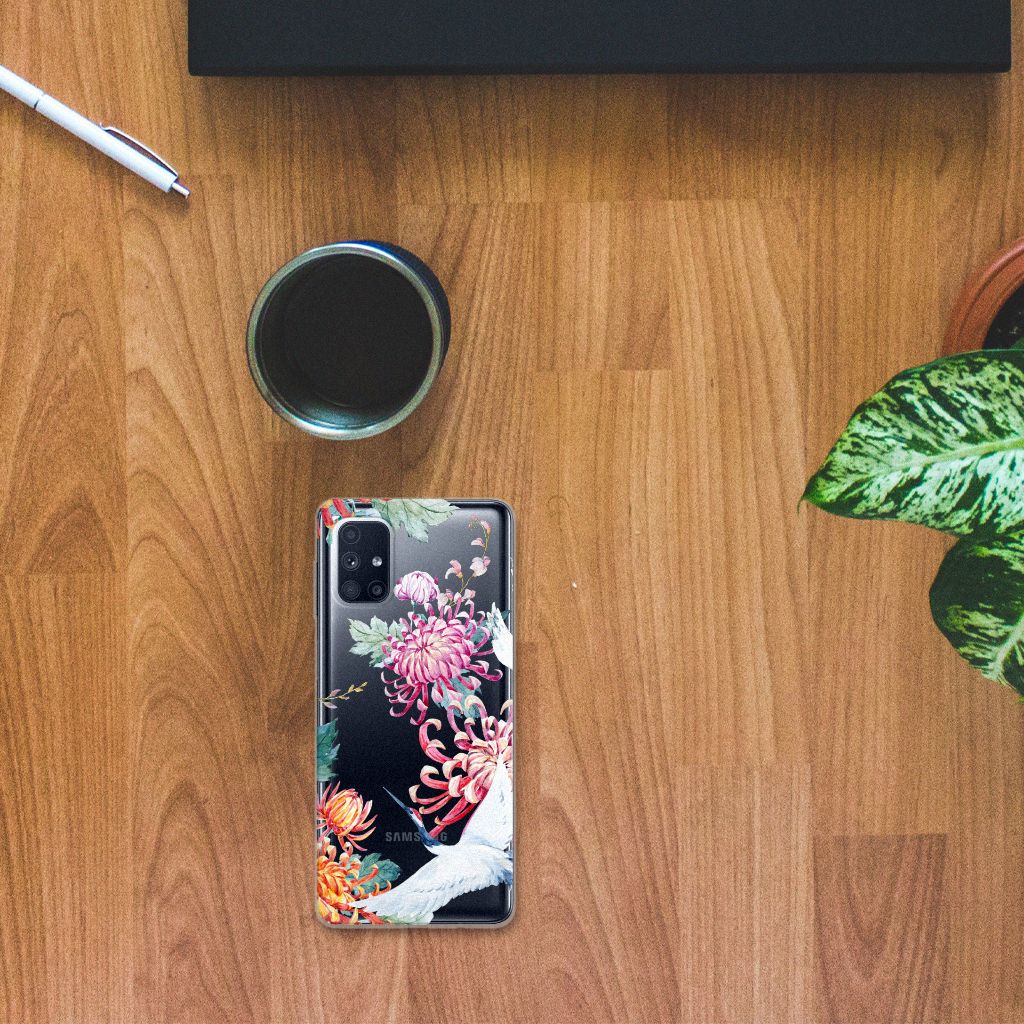Verspreid over de hele wereld leven 19 soorten ooievaars. De spanwijdte – dat is de afstand van vleugeltip tot vleugeltip – van een volwassen ooievaar kan 2.50 meter bedragen. De gebieden waarin de ooievaar broedt, liggen in heel Europa, het Midden-Oosten, West- en Centraal-Azië en Noordwest-Afrika. Het ideale leefgebied van de ooievaar is een half open tot open landschap met veel afwisseling in grondgebruik en begroeiing. De begroeiing op dit design hoesje, in allerlei verschillende kleuren, zal niet alleen voor de ooievaars fraai zijn. Jij zult er zelf ook heel vrolijk van worden. Het in het oog springende design staat op een TPU Hoesje. Dit telefoonhoesje wordt alleen aan de bovenkant bedrukt en is zeer flexibel. De randen van het hoesje blijven transparant en worden niet bedrukt. Met dit hoesje past jouw Samsung Galaxy M51 altijd in je broekzak.