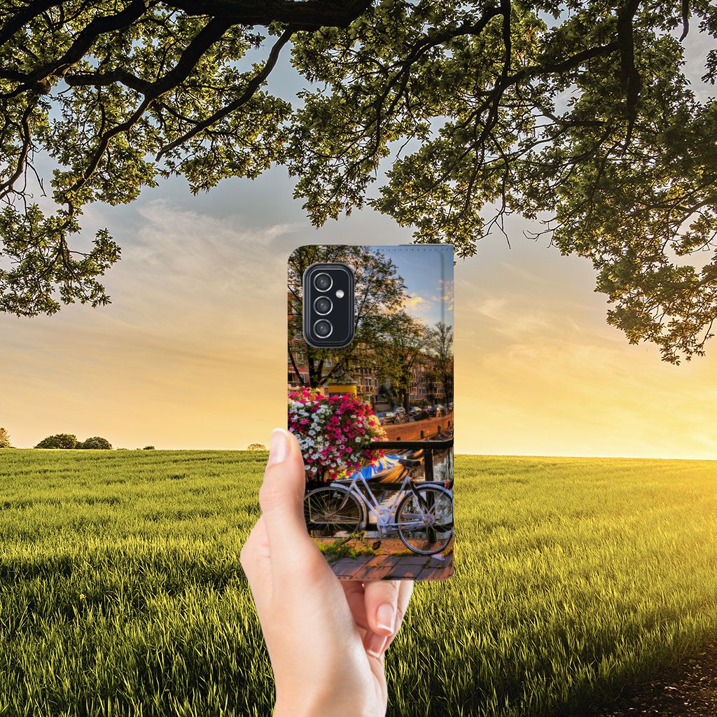 Amsterdam is meer dan ooit een toeristische trekpleister. Een bezoek aan de hoofdstad is niet compleet als er geen bezoek is gebracht aan de Amsterdamse Grachten. Ze zijn een symbool van de stad en hebben een enorme culturele en historische waarde. Daarom kunnen ze natuurlijk niet ontbreken in onze collectie design hoesjes. Dit schitterende design hoesje met Amsterdamse grachten tref je enkel en alleen aan bij B2C Telecom. De ondergaande zon en de fleurige en fraaie bloempakketten zorgen voor een prachtig totaalplaatje. Amsterdam is wereldberoemd om haar prachtige grachten uit de zeventiende eeuw. Dit smartphone hoesje is hier een eerbetoon aan. Het design staat op een stand case. Deze Samsung Galaxy M52 Book Cover beschermt jouw telefoon aan alle kanten en beschikt over een 1 opbergvakje en een speciale standaard. Het hoesje wordt afgesloten met een magneet aan de binnenzijde. De houder aan de binnenzijde is van TPU. Alle zijden van de stand case worden bedrukt.