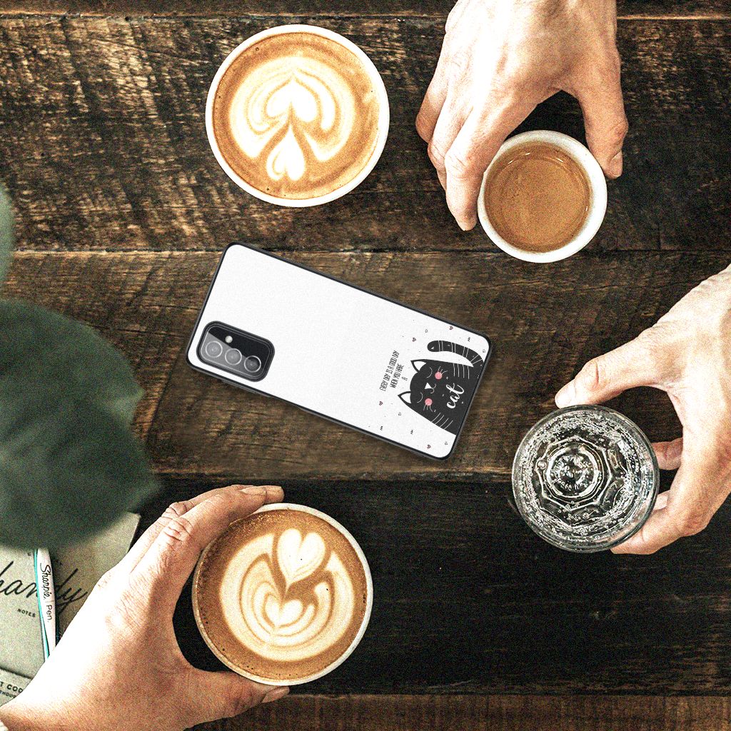 Samsung Galaxy M52 Standcase Marmer Wit Zwart - Origineel Cadeau Man