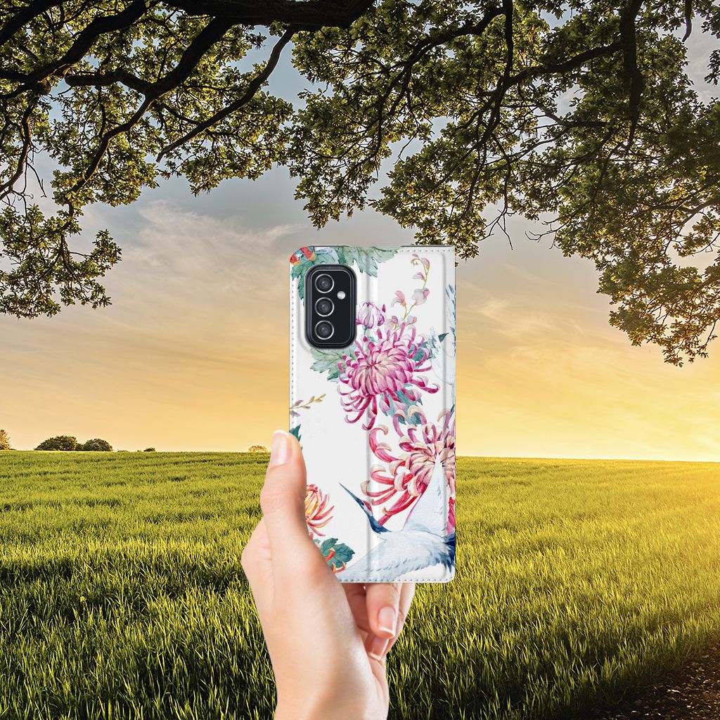 Verspreid over de hele wereld leven 19 soorten ooievaars. De spanwijdte – dat is de afstand van vleugeltip tot vleugeltip – van een volwassen ooievaar kan 2.50 meter bedragen. De gebieden waarin de ooievaar broedt, liggen in heel Europa, het Midden-Oosten, West- en Centraal-Azië en Noordwest-Afrika. Het ideale leefgebied van de ooievaar is een half open tot open landschap met veel afwisseling in grondgebruik en begroeiing. De begroeiing op dit design hoesje, in allerlei verschillende kleuren, zal niet alleen voor de ooievaars fraai zijn. Jij zult er zelf ook heel vrolijk van worden. Het in het oog springende design staat op een Hoesje maken. Deze case beschermt jouw Samsung Galaxy M52 aan alle kanten en beschikt over een 1 opbergvakje en een speciale standaard. Het hoesje wordt afgesloten met een magneet aan de binnenzijde. De houder aan de binnenzijde is van TPU. Alle zijden van de stand case worden bedrukt.