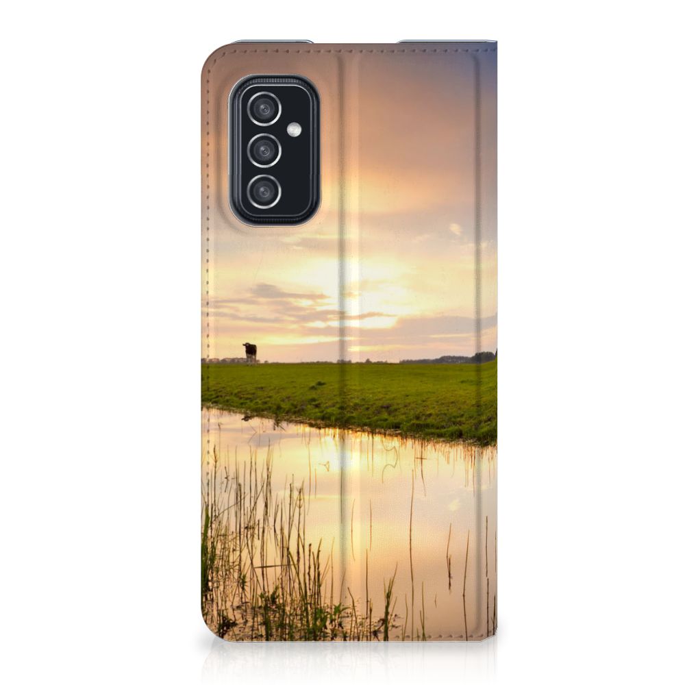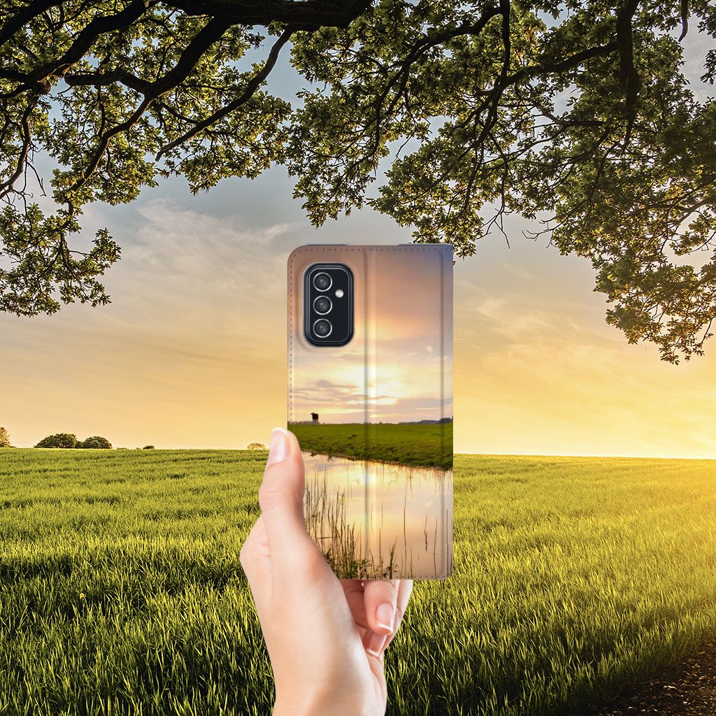 Het levert een idyllisch plaatje op, dit hoesje met een koe en ondergaande zon op de achtergrond. Door een koe buiten te laten lopen en grazen, hebben ze minder kans om ziek te worden. De Koe graast het liefst met soortgenoten, al zijn deze een stukje van de koe op de case verwijderd. Dit levert ook een mooi plaatje op, zoals je kunt zien op dit design hoesje. Deze stand case ziet er strak uit en is voorzien van verschillende uitsparingen. Een Samsung Galaxy M52 Hoesje maken met magneet aan de binnenzijde beschermt jouw smartphone overal. Alle zijden zijn bedrukt. Koeien hebben lange graasperioden nodig, afgewisseld door rust- en herkauwperioden. Zo goed als grazen voelt voor koeien, zo lang zal jouw design hoesje meegaan. De binnenkant van de stand case is van TPU, de buitenzijde van leer.
