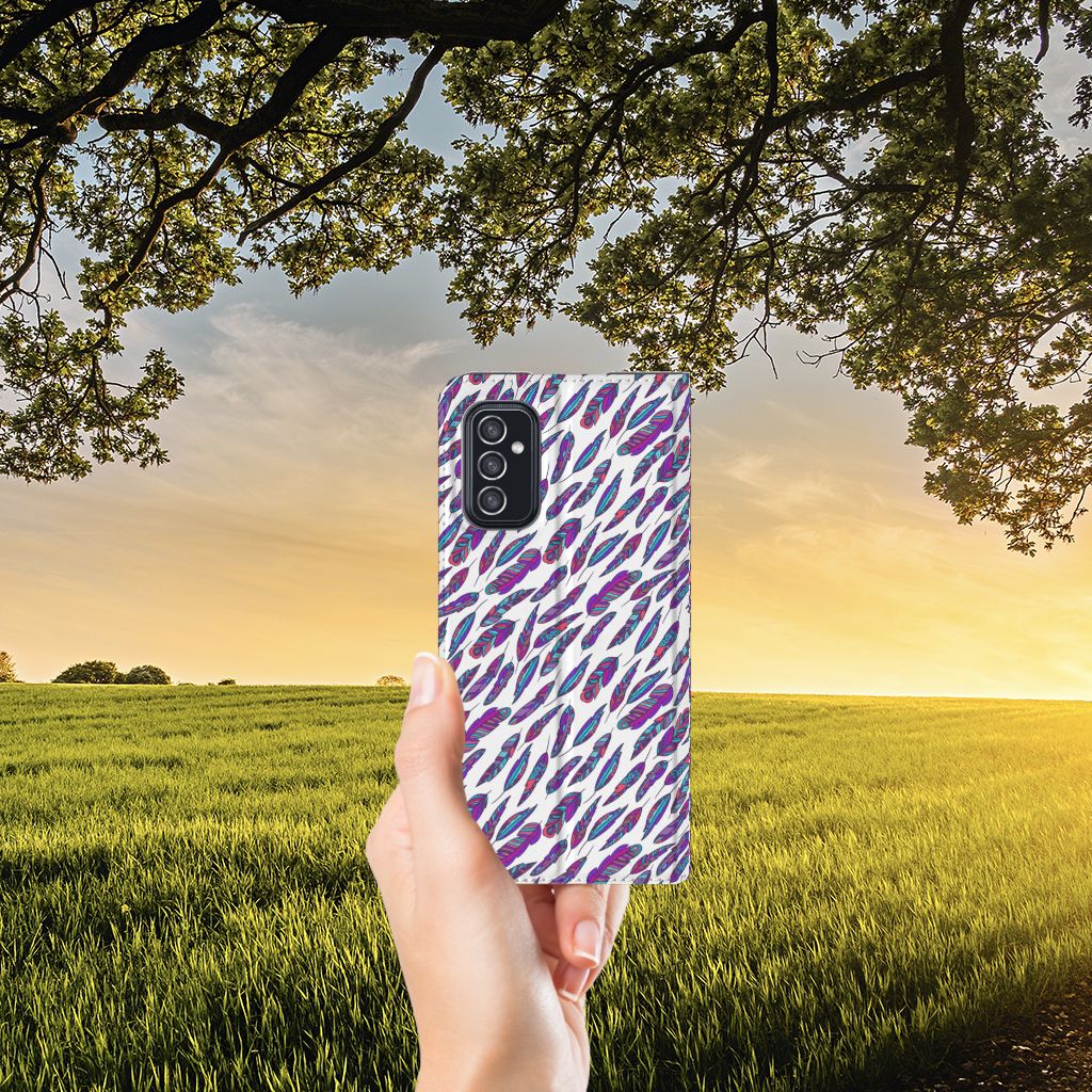 Ben je op zoek naar een uniek telefoonhoesje voor je Samsung Galaxy M52? Dan ben je bij B2C Telecom aan het juiste adres! Speciaal voor jou hebben we dit prachtige Feathers Color design in onze collectie hoesjes opgenomen. Het design wordt bedrukt op een Hoesje met Magneet en heeft een vakje aan de binnenkant voor een pasje. Het fijne aan dit hoesje is dat je het als standaard neer kunt zetten. Hierdoor geniet je nog meer als je een filmpje aan het kijken bent op je telefoon. Het hoesje wordt afgesloten door magneten aan de binnenkant. Wil je dit design hoesje nog iets extra's geven? Voeg dan gratis je naam of een quote toe! Is dit design hoesje toch niet helemaal wat je zocht? Ontwerp dan zelf een hoesje in ons ontwerpprogramma.