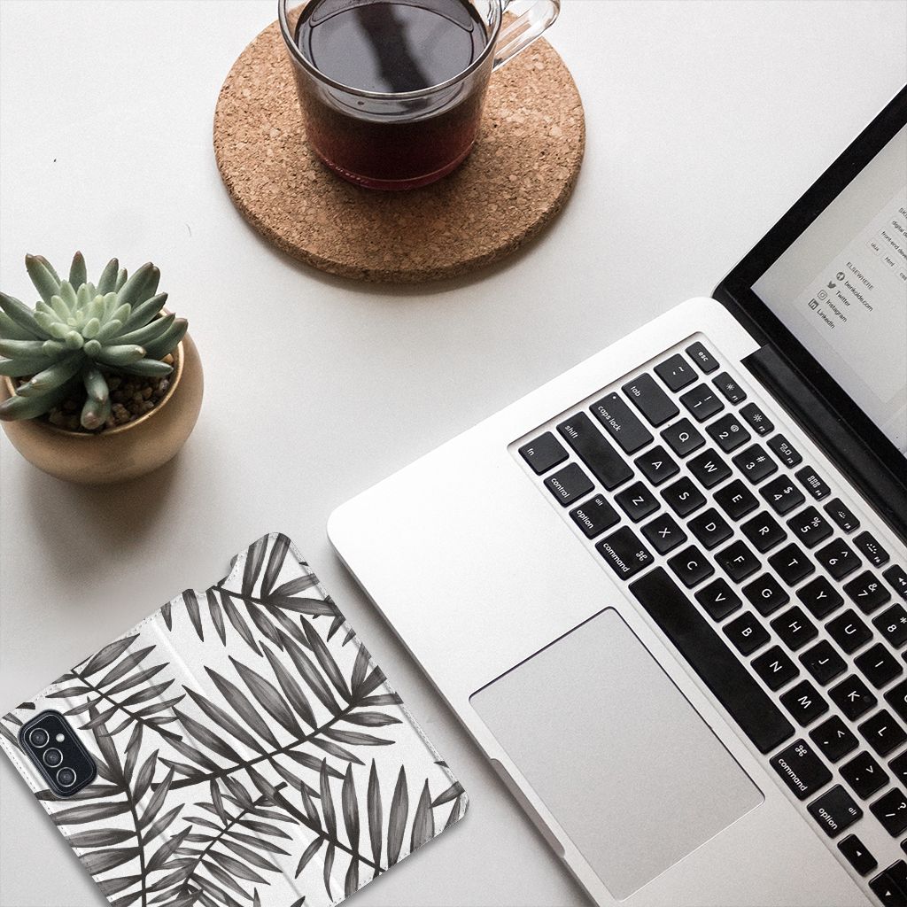 Ben je op zoek naar een uniek telefoonhoesje voor je Samsung Galaxy M52? Dan ben je bij B2C Telecom aan het juiste adres! Speciaal voor jou hebben we dit prachtige Leaves Grey design in onze collectie hoesjes opgenomen. Het design wordt bedrukt op een Smart Cover en heeft een vakje aan de binnenkant voor een pasje. Het fijne aan dit hoesje is dat je het als standaard neer kunt zetten. Hierdoor geniet je nog meer als je een filmpje aan het kijken bent op je telefoon. Het hoesje wordt afgesloten door magneten aan de binnenkant. Wil je dit design hoesje nog iets extra's geven? Voeg dan gratis je naam of een quote toe! Is dit design hoesje toch niet helemaal wat je zocht? Ontwerp dan zelf een hoesje in ons ontwerpprogramma.