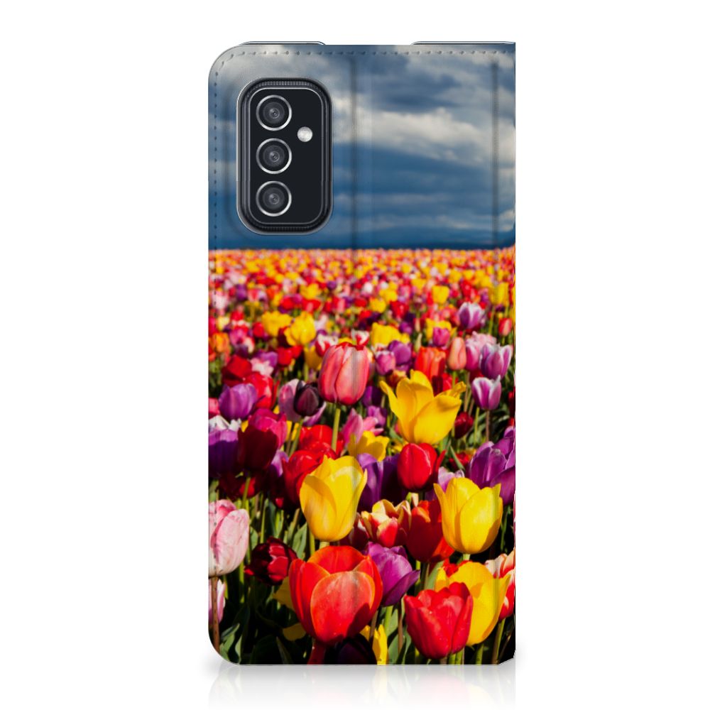 De tulp is een oer-Nederlandse bloem en heeft een lange geschiedenis. Deze Samsung Galaxy M52 Smart Cover met Tulpen ziet er bijzonder kleurrijk uit. Dit fleurige smartphone hoesje geeft een bijzondere bescherming van jouw apparaat. Tulpen zijn ideaal voor een kleurrijk begin van het tuinseizoen. Iedereen wordt er vrolijk van om te zien hoe deze bloemen het voorjaar kleur geven en het begin van de warmere tijd van het jaar aankondigen. Dan kan het toch niet anders of jij wordt heel erg blij van deze stand case met tulpen? Deze populaire stand case heeft ruimte voor een pasje of briefgeld aan de binnenzijde en wordt magnetisch afgesloten. De houder aan de binnenkant is van TPU en de case wordt aan alle zijden bedrukt met tulpen. Je kunt ook zelf een stand case maken met daarop jouw favoriete bloemen.