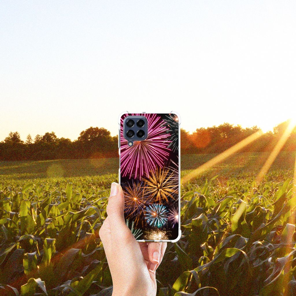 Ben je op zoek naar een uniek telefoonhoesje voor je Samsung Galaxy M53? Dan ben je bij B2C Telecom aan het juiste adres! Speciaal voor jou hebben we dit prachtige Vuurwerk design in onze collectie hoesjes opgenomen. Het design wordt bedrukt op een Anti Shock Bumper Case en is gemaakt van flexibel rubber. Het hoesje is perfect voor de actieve smartphonegebruiker door de opstaande randen/hoeken. Denk aan mensen die veel sporten, reizen of wandelen en net iets meer zekerheid willen als het op hun geliefde telefoon aankomt. Het design wordt alleen aan de bovenkant van het hoesje bedrukt en de randen blijven transparant. Aan de zijkanten zijn uitsparingen gemaakt waardoor je met gemak alle knoppen en poorten kunt bedienen. Wij adviseren om dit hoesje in combinatie met een screenprotector te gebruiken voor een langere levensduur van je telefoon. Wil je dit hoesje nog iets extra's geven? Voeg dan gratis je naam of een quote toe! Is dit design hoesje toch niet helemaal wat je zocht? Ontwerp dan zelf een hoesje in ons ontwerpprogramma.