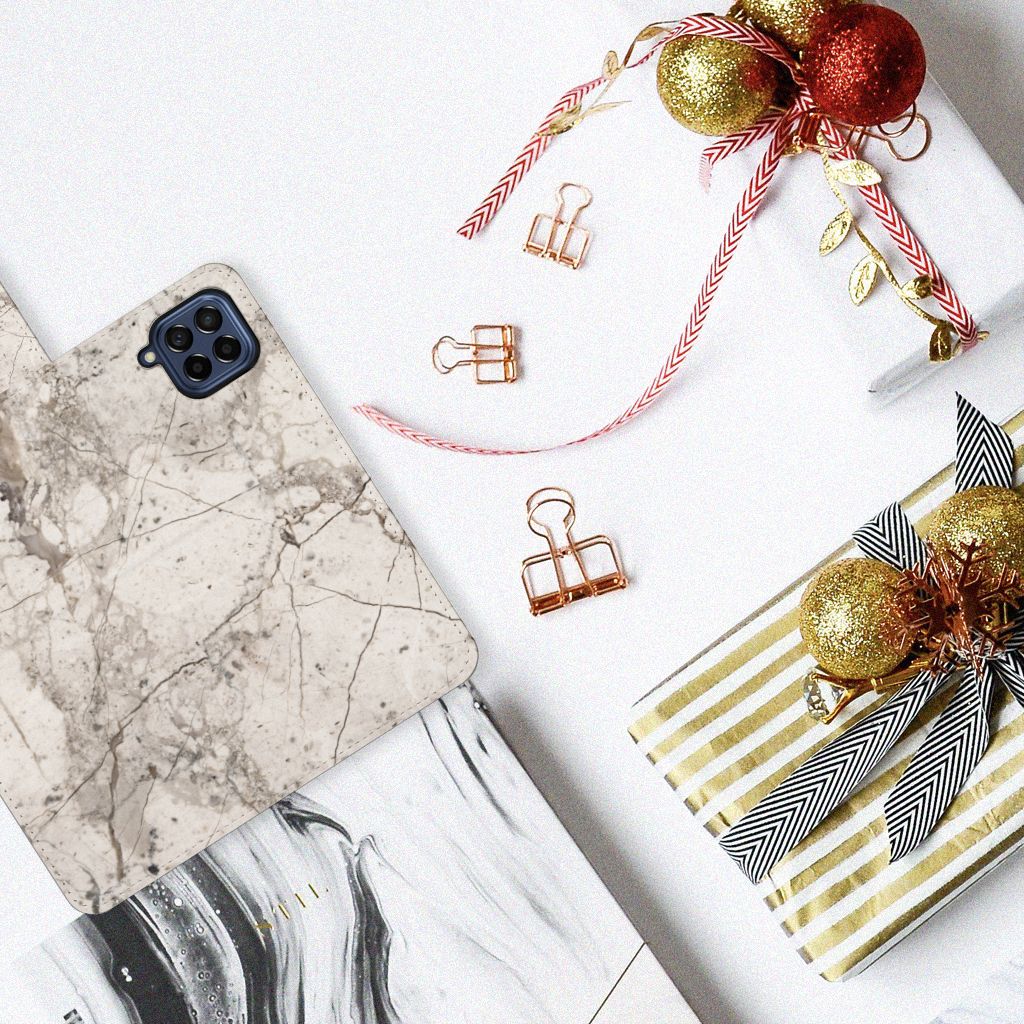Samsung Galaxy M53 Bookcase met pasjes Marmer Beige