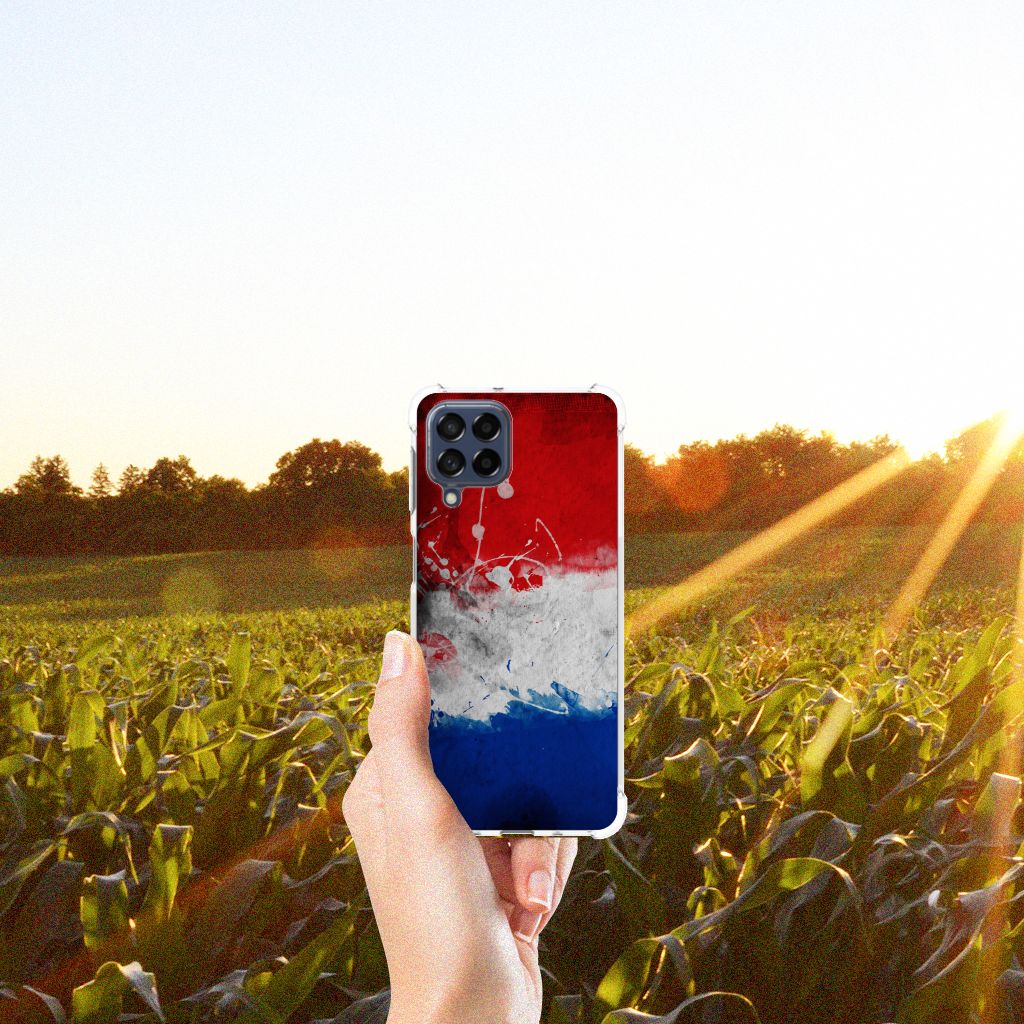 Ben je op zoek naar een uniek telefoonhoesje voor je Samsung Galaxy M53? Dan ben je bij B2C Telecom aan het juiste adres! Speciaal voor jou hebben we dit prachtige Nederlandse Vlag design in onze collectie hoesjes opgenomen. Het design wordt bedrukt op een Cover Case en is gemaakt van flexibel rubber. Het hoesje is perfect voor de actieve smartphonegebruiker door de opstaande randen/hoeken. Denk aan mensen die veel sporten, reizen of wandelen en net iets meer zekerheid willen als het op hun geliefde telefoon aankomt. Het design wordt alleen aan de bovenkant van het hoesje bedrukt en de randen blijven transparant. Aan de zijkanten zijn uitsparingen gemaakt waardoor je met gemak alle knoppen en poorten kunt bedienen. Wij adviseren om dit hoesje in combinatie met een screenprotector te gebruiken voor een langere levensduur van je telefoon. Wil je dit hoesje nog iets extra's geven? Voeg dan gratis je naam of een quote toe! Is dit design hoesje toch niet helemaal wat je zocht? Ontwerp dan zelf een hoesje in ons ontwerpprogramma.