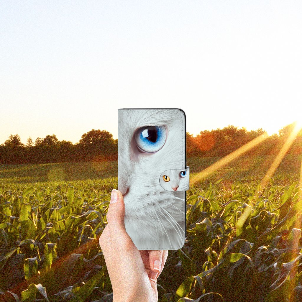 Samsung Galaxy M53 Telefoonhoesje met magnetisch lipje als sluiting Witte Kat