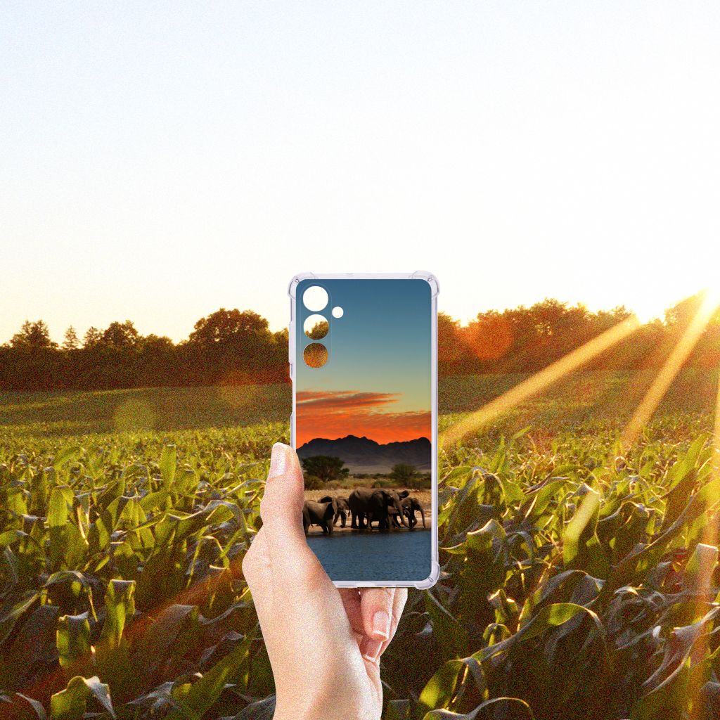 Ben je op zoek naar een uniek telefoonhoesje voor je Samsung Galaxy M54? Dan ben je bij B2C Telecom aan het juiste adres! Speciaal voor jou hebben we dit prachtige Olifanten in onze collectie hoesjes opgenomen. Het design wordt bedrukt op een Case Anti-shock en is gemaakt van flexibel rubber. Het hoesje is perfect voor de actieve smartphonegebruiker door de opstaande randen/hoeken. Denk aan mensen die veel sporten, reizen of wandelen en net iets meer zekerheid willen als het op hun geliefde telefoon aankomt. Het design wordt alleen aan de bovenkant van het hoesje bedrukt en de randen blijven transparant. Aan de zijkanten zijn uitsparingen gemaakt waardoor je met gemak alle knoppen en poorten kunt bedienen. Wij adviseren om dit hoesje in combinatie met een screenprotector te gebruiken voor een langere levensduur van je telefoon. Wil je dit hoesje nog iets extra's geven? Voeg dan gratis je naam of een quote toe! Is dit design hoesje toch niet helemaal wat je zocht? Ontwerp dan zelf een hoesje in ons ontwerpprogramma.