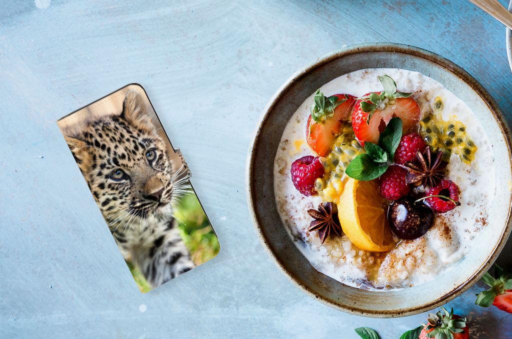 Samsung Galaxy M54 Telefoonhoesje met magneetsluiting Baby Luipaard
