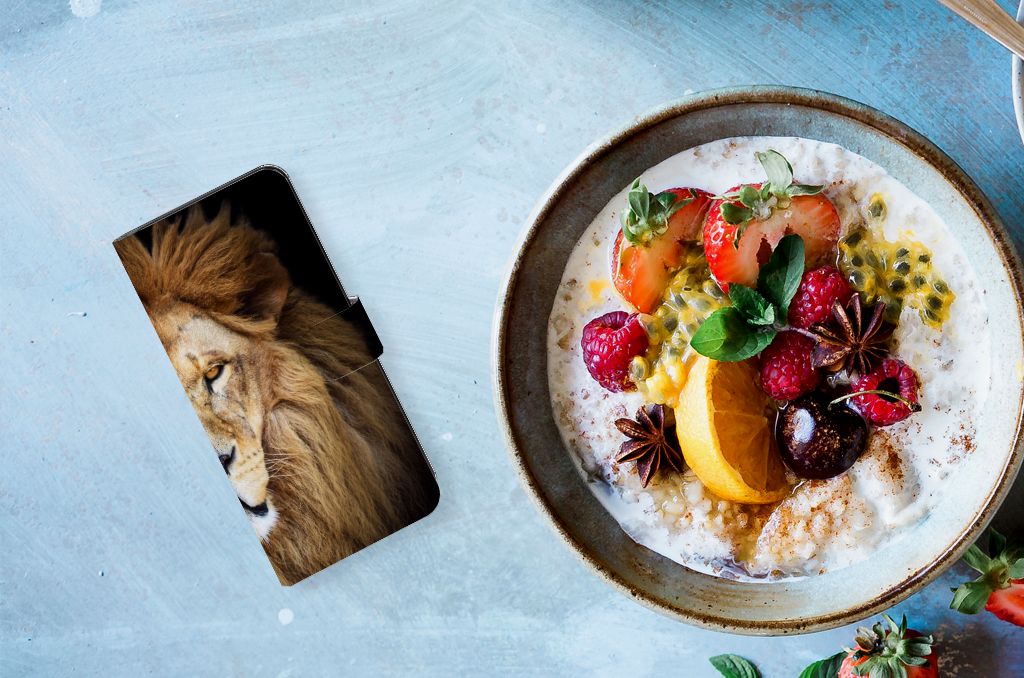 Samsung Galaxy M54 Telefoonhoesje met Pasjes en met magnetische sluitclip Leeuw