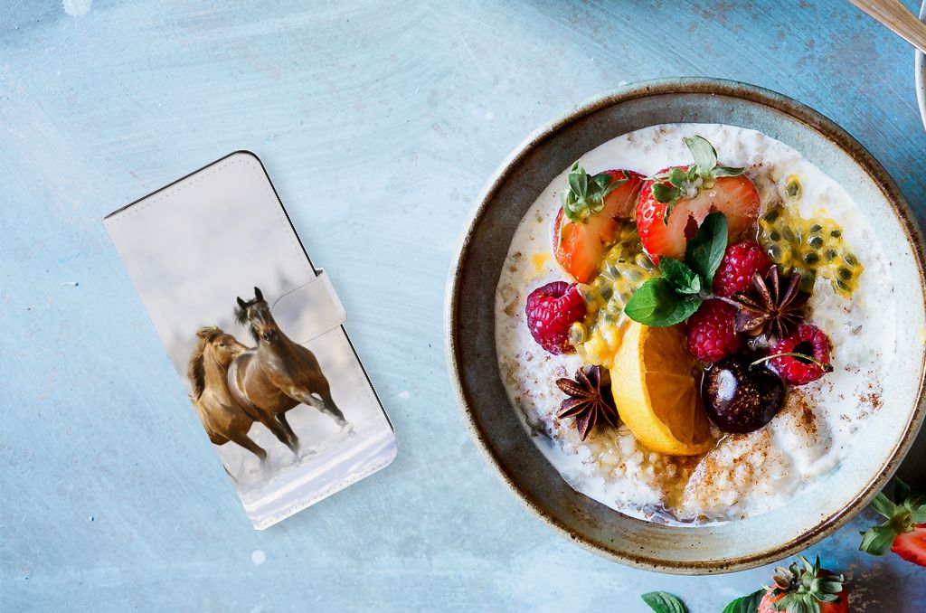 Als je een paardenliefhebber bent, dan is dit telefoonhoesje met ruimte voor pasjes misschien wel wat voor jou. Ondanks dat er paarden op staan, heeft deze bookcase toch een rustig uiterlijk. Dit is ook dankzij de kleuren die gebruikt zijn. Als je liever jouw eigen paarden terugziet op dit Samsung Galaxy M54 hoesje, dan is dit ook mogelijk! Voor een uniek Telefoonhoesje met Pasjes kun je jouw foto insturen zodat deze op het hoesje kan worden gedrukt. Zo heb jij jouw paarden toch altijd een beetje bij je. Naast dat dit unieke telefoonhoesje erg mooi is, is hij ook nog functioneel. Het is een telefoonhoesje met ruimte voor pasjes, zodat al jouw belangrijke zaken op één plek kunnen worden bewaard. Hierdoor zal je jouw pasjes een stuk minder snel kwijtraken en heb je ze altijd bij de hand.