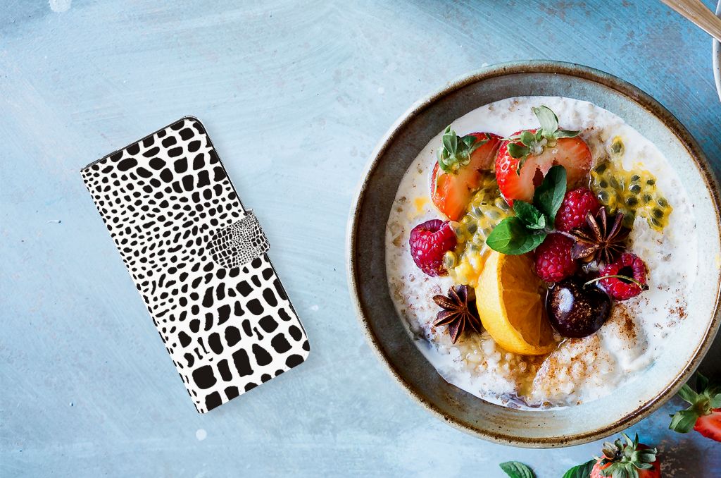 De reguliere slangenprint heb je waarschijnlijk al vaker gezien, maar heb je ooit een slangenprint in zwart en wit gezien? Doordat de slangenprint nu in het zwart en wit staat, ziet jouw Samsung Galaxy M54 Telefoonhoesje met Pasjes er nog exclusiever uit. Ook het model, een boekhoesje, ziet er exclusief uit. Maar behalve dat het er exclusief uitziet, is het ook heel praktisch. Je kunt in dit design hoesje namelijk 2 á 3 pasjes en wat briefgeld kwijt. Zo heb je al jouw waardevolle spullen veilig op dezelfde plek en kun je het niet kwijtraken. Dat scheelt weer een hoop gedoe als je een keer boodschappen gaat doen of op stap gaat. Je kunt jouw portemonnee lekker thuislaten.