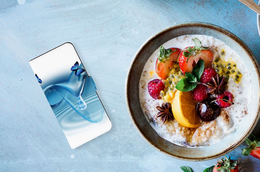 De bedrukking met de blauwe vlinders in combinatie met de blauwe golven maken van deze bookstyle case een ware eyecatcher. De opvallende kleuren maken dit een erg gewild Samsung Galaxy M54 hoesje. De bedrukking wordt met hoge kwaliteit uitgevoerd door onze geavanceerde printer met duurzame inkt. En dat is niet het enige wat duurzaam is aan dit Telefoonhoesje met Pasjes, de bookstyle case gaat zelf ook lang mee. Naast duurzaamheid en een opvallend design, kun je in dit hoesje ook nog drie pasjes kwijt. Als je dan een keer op pad gaat, kun je jouw portemonnee gewoon thuislaten en deze dus niet kwijtraken.