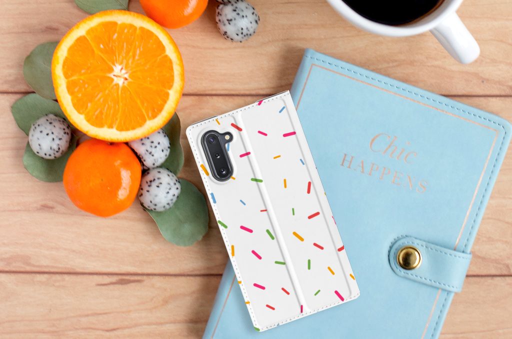 De cartoon met Donut op dit design hoesje geeft jouw smartphone een grappige en vrolijke uitstraling. De Samsung Galaxy Note 10 Flip Style Cover zorgt ervoor dat je je schouders op zult halen als je telefoon een keer op de grond valt. Omdat er geen schade zal optreden kun jij je weg weer heel makkelijk vervolgen. De grappige Donut Care stand case is een zeer populair product. Allereerst is het nergens anders te krijgen. Het design is namelijk van de hand van onze eigen ontwerper. Daarnaast zal de case jouw smartphone aan alle zijden beschermen. Ook heeft het Donut Care hoesje een vakje aan de binnenzijde en een speciale standaard. Ook kun je je eigen unieke hoesje ontwerpen, met eigen cartoons, foto’s en teksten. De houder aan de binnenzijde van de Donut Care case is van TPU, de buitenzijde van PU leer.