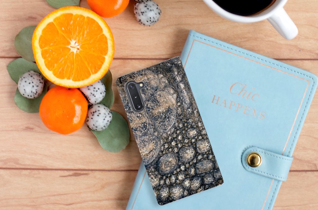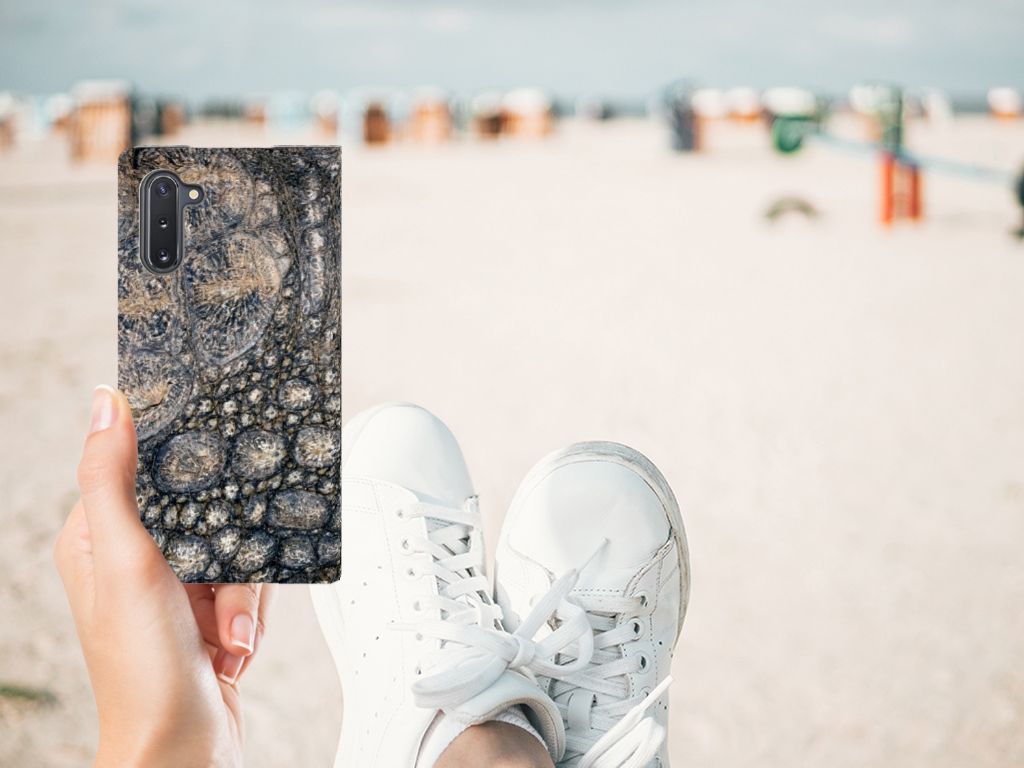 De dikke huid van een krokodil is zeer gevoelig. Met deze Samsung Galaxy Note 10 Hoesje maken met Krokodillenprint hoef je je geen zorgen te maken dat je smartphone schade oploopt. De krokodillenprint zetten we op een stand case op het moment dat jij je bestelling plaatst. Hierdoor krijgt jouw telefoon een print van krokodillen van zeer hoge kwaliteit. We bedrukken jouw gehele stand case met de vlekken van de krokodil. Je bankpas of creditcard kun je stoppen in het vakje aan de binnenkant van het telefoonhoesje met krokodillenprint. Met hun zintuigen kunnen krokodillen hitte, kou, aanraking, waterstroming en chemische stoffen detecteren. Jouw stand hoesje met krokodillenprint beschermt perfect tegen invloeden van buitenaf.