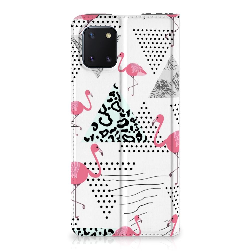 Een Samsung Galaxy Note 10 Lite Hoesje maken met Flamingo Triangle is in vele opzichten bijzonder. De rode flamingo op het hoesje komt oorspronkelijk uit het Caraïbische gebied. Stel dat je in deze regio vakantie viert, dan val je zonder meer op met dit hoesje met flamingo’s en driehoeken. Deze stand case biedt bescherming voor alle zijden van je telefoon. Jouw smartphone ligt goed opgeborgen in de TPU houder aan de binnenzijde en in dit gedeelte van het hoesje met flamingo’s en driehoeken zit de magnetische sluiting. Ook de palmbomen op deze stand case bieden het ultieme vakantiegevoel. De stand case met flamingo’s en driehoeken heeft vakjes voor pasjes en is op maat gemaakt.