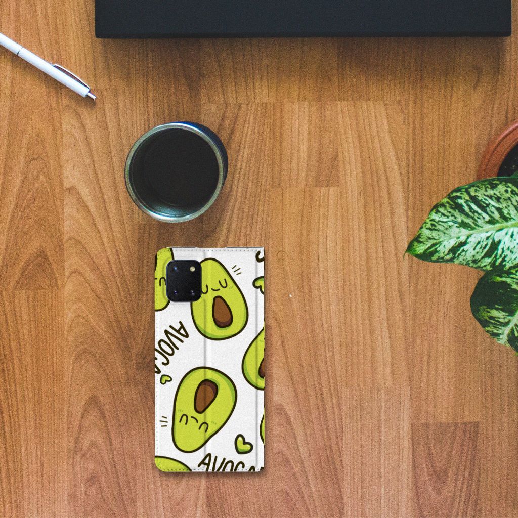 Avocado’s zijn niet alleen heel erg goed voor je, ze zijn ook super leuk op je telefoonhoesje. Dit unieke design vol schattige avocado’s zal jou en iedereen om je heen meteen opvrolijken. Nog een voordeel van dit design: deze avocado’s bederven nooit! Dit leuke Avocado Singing-ontwerp staat op een Magnet Case voor de Samsung Galaxy Note 10 Lite. Dit populaire smartphonehoesje heeft één vakje en is aan alle zijden bedrukt. Met de standcase zet je je telefoon gemakkelijk neer, zodat je je handen vrij hebt als je bijvoorbeeld filmpjes bekijkt. De binnenkant van de standcase is van grijs PU-leer. Dat is ideaal, omdat je daardoor niet snel vlekken ziet op je hoesje.
