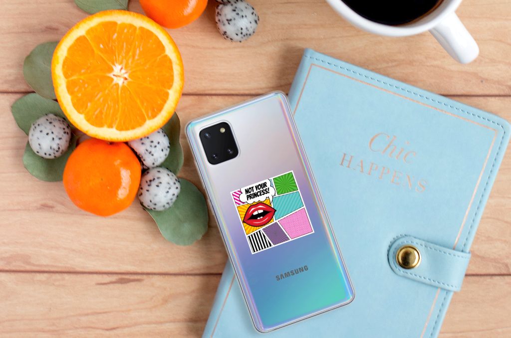 Ben je op zoek naar een uniek telefoonhoesje voor je Samsung Galaxy Note 10 Lite? Dan ben je bij B2C Telecom aan het juiste adres! Speciaal voor jou hebben we dit prachtige Popart Princess design in onze collectie hoesjes opgenomen. Het design wordt bedrukt op een Silicone Back Cover en is gemaakt van flexibel rubber. Het design wordt alleen aan de bovenkant van het hoesje bedrukt en de randen blijven transparant. Aan de zijkanten zijn uitsparingen gemaakt waardoor je met gemak alle knoppen en poorten kunt bedienen. Wij adviseren om dit hoesje in combinatie met een screenprotector te gebruiken voor een langere levensduur van je telefoon. Wil je dit design hoesje nog iets extra's geven? Voeg dan gratis je naam of een quote toe! Is dit design hoesje toch niet helemaal wat je zocht? Ontwerp dan zelf een hoesje in ons ontwerpprogramma