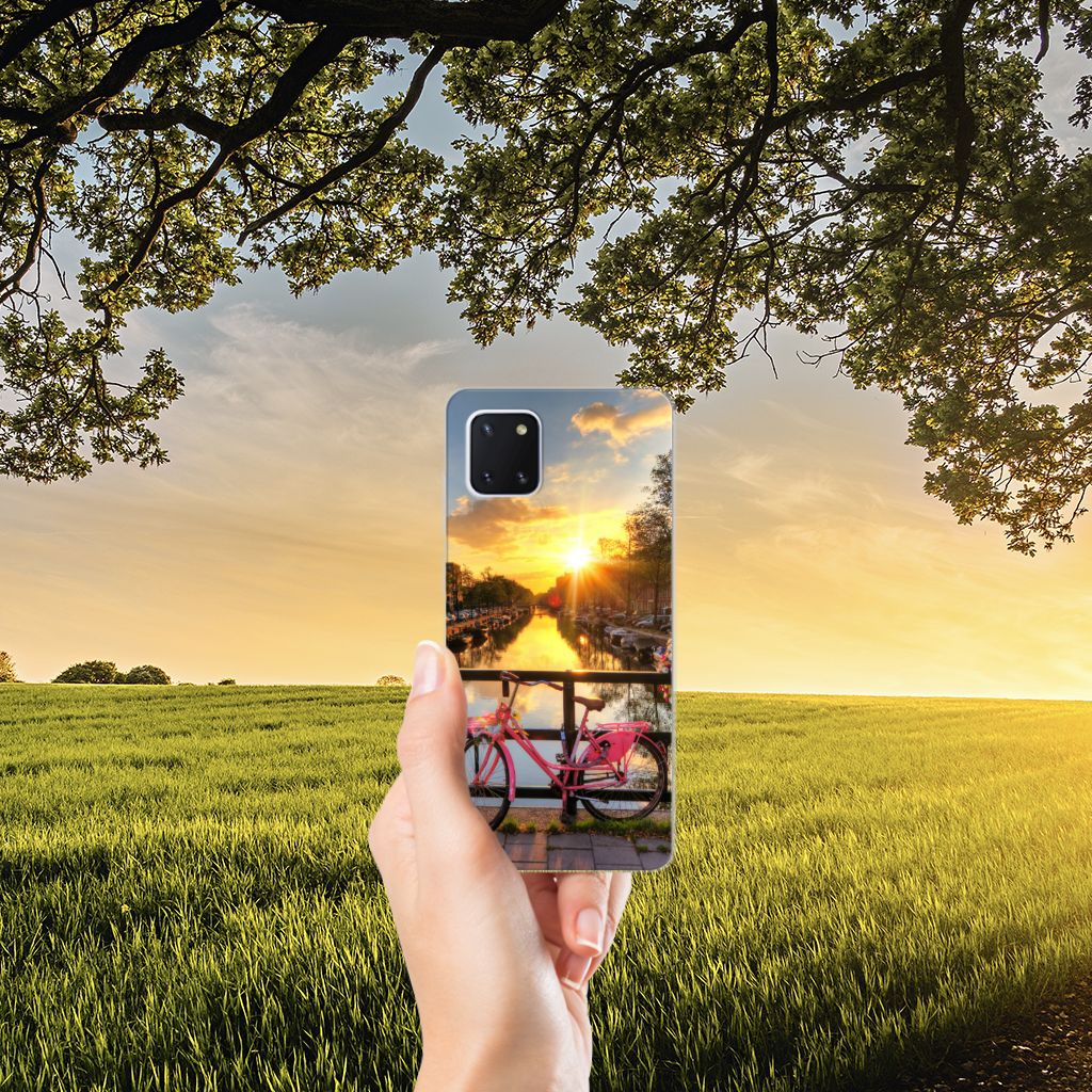 Amsterdam is meer dan ooit een toeristische trekpleister. Een bezoek aan de hoofdstad is niet compleet als je niet aanlegt bij de Amsterdamse Grachten. Ze zijn een symbool van de stad en hebben een enorme culturele en historische waarde. Daarom kunnen ze natuurlijk niet ontbreken in onze collectie design hoesjes. Dit schitterende design hoesje met Amsterdamse grachten tref je enkel en alleen aan bij B2C Telecom. De ondergaande zon en de fleurige en fraaie bloempakketten zorgen voor een prachtig totaalplaatje. Amsterdam is wereldberoemd om haar prachtige grachten uit de zeventiende eeuw. Dit smartphone hoesje is hier een eerbetoon aan. Het design staat op een TPU case. Dit Samsung Galaxy Note 10 Lite Siliconen Back Cover wordt alleen aan de bovenkant bedrukt en is zeer flexibel. De randen van het hoesje blijven transparant.